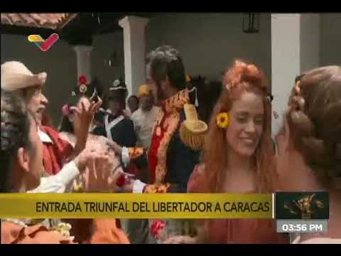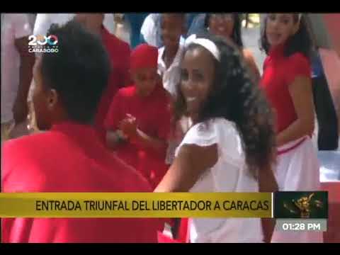 Los venezolanos celebraron este martes la entrada triunfal, hace 200 años, del Libertador Simón Bolívar a Caracas, después de siete años de ausencia, y luego de haber sellado su triunfo en la Batalla de Carabobo. Para conmemorar este magno acontecimiento, el Gobierno Nacional realizó un acto simbólico, que representó la llegada del Padre de la Patria a su ciudad natal, por la parroquia Macarao, donde el Libertador fue recibido por el pueblo bolivariano visiblemente emocionado.