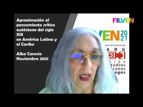 La profesora Alba Carosio, investigadora de la Fundación Celarg, la ponencia titulada “Aproximación al pensamiento crítico autóctono del siglo XIX en América Latina y el Caribe”, la cual está disponible en la plataforma virtual de la Feria Internacional del Libro de Venezuela (FILVEN 2021).