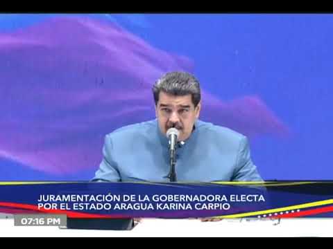 Durante el acto de juramentación de la gobernadora electa del estado Aragua, karina Carpio, el Jefe de Estado llamó a Gobernadores y Gobernadoras, Alcaldes y Alcaldesas electas a trabajar por el bienestar del pueblo. «Les tiendo mis manos, vamos a trabajar por el bienestar del pueblo».