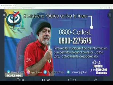 El Fiscal General de la República reveló que por este hecho se activó una línea telefónica directa para atender información que permita ubicar a Carlos Lanz, a través del número 0800-CARLOSL (0800-227-5675).