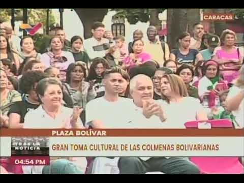 Este jueves se realiza en la Plaza Bolívar de Caracas la Gran Toma Cultural de las Colmenitas Bolivarianas de la capital. Con la participación de más de 600 niños y niñas se presentan expresiones tradicionales de varias zonas del país como La muñeca de la calenda del estado Trujillo y las Zaragozas del estado Lara.