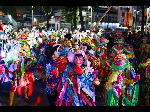 Mientras se iba desarrollando un ritual chamánico en la tarima, el pasacalle Amalivaca empezó su recorrido. Este pasacalle recrea una leyenda indígena venezolana sobre la creación del mundo, el Orinoco y el tiempo.