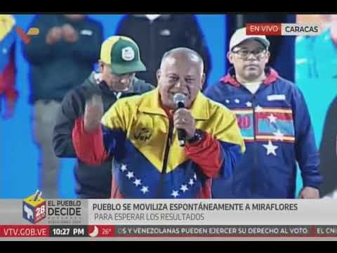 Mientras se esperan los resultados oficiales del Consejo Nacional Electoral (CNE) sobre las elecciones presidenciales de este 28 de julio de 2024, cientos de partidarios del Presidente Nicolás Maduro plenan desde las 9 de la noche de este domingo los alrededores del Palacio de Miraflores, sede de gobierno. El vicepresidente del Partido Socialista Unido de Venezuela, Diosdado Cabello, llamó a celebrar los 70 años del nacimiento de Hugo Chávez y esperar los resultados oficiales del CNE.