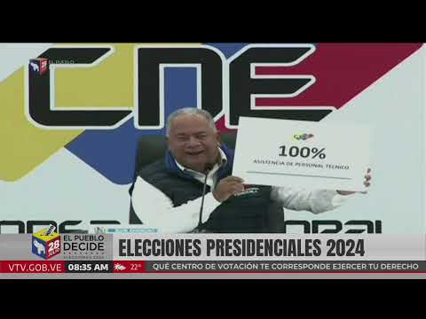 El presidente del Consejo Nacional Electoral (CNE), Elvis Amoroso, informó poco después de las 8 de la mañana de este domingo que el 95 por ciento de las mesas están constituidas para las elecciones presidenciales. No se requiere tapabocas para votar. Informó de los fuertes obstáculos que tuvieron que sortear a consecuencia de las sanciones, para poderse realizar el proceso electoral.