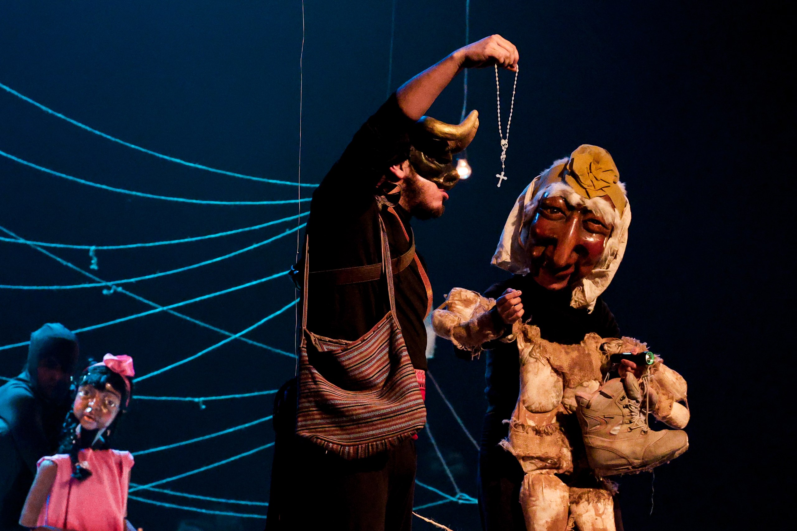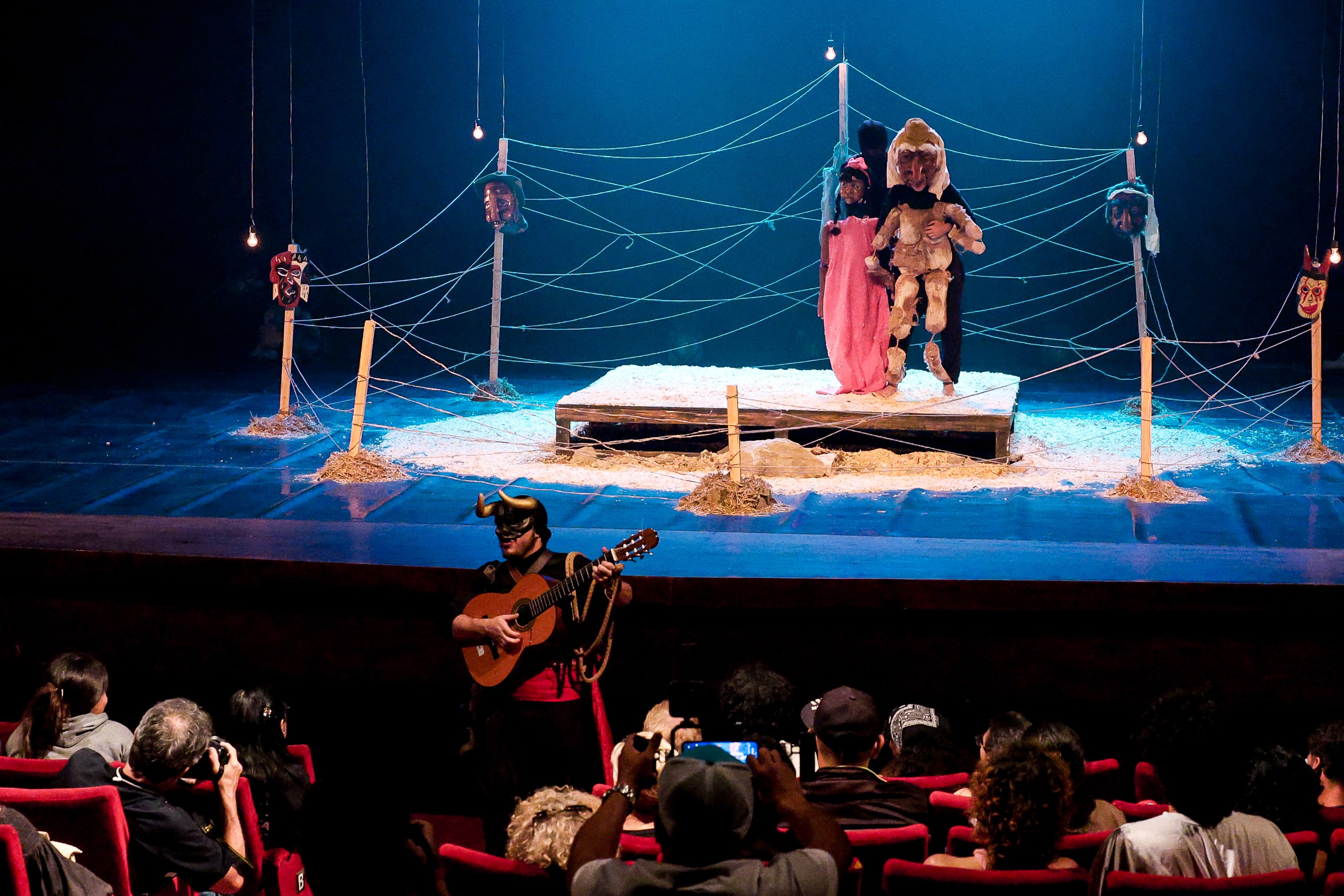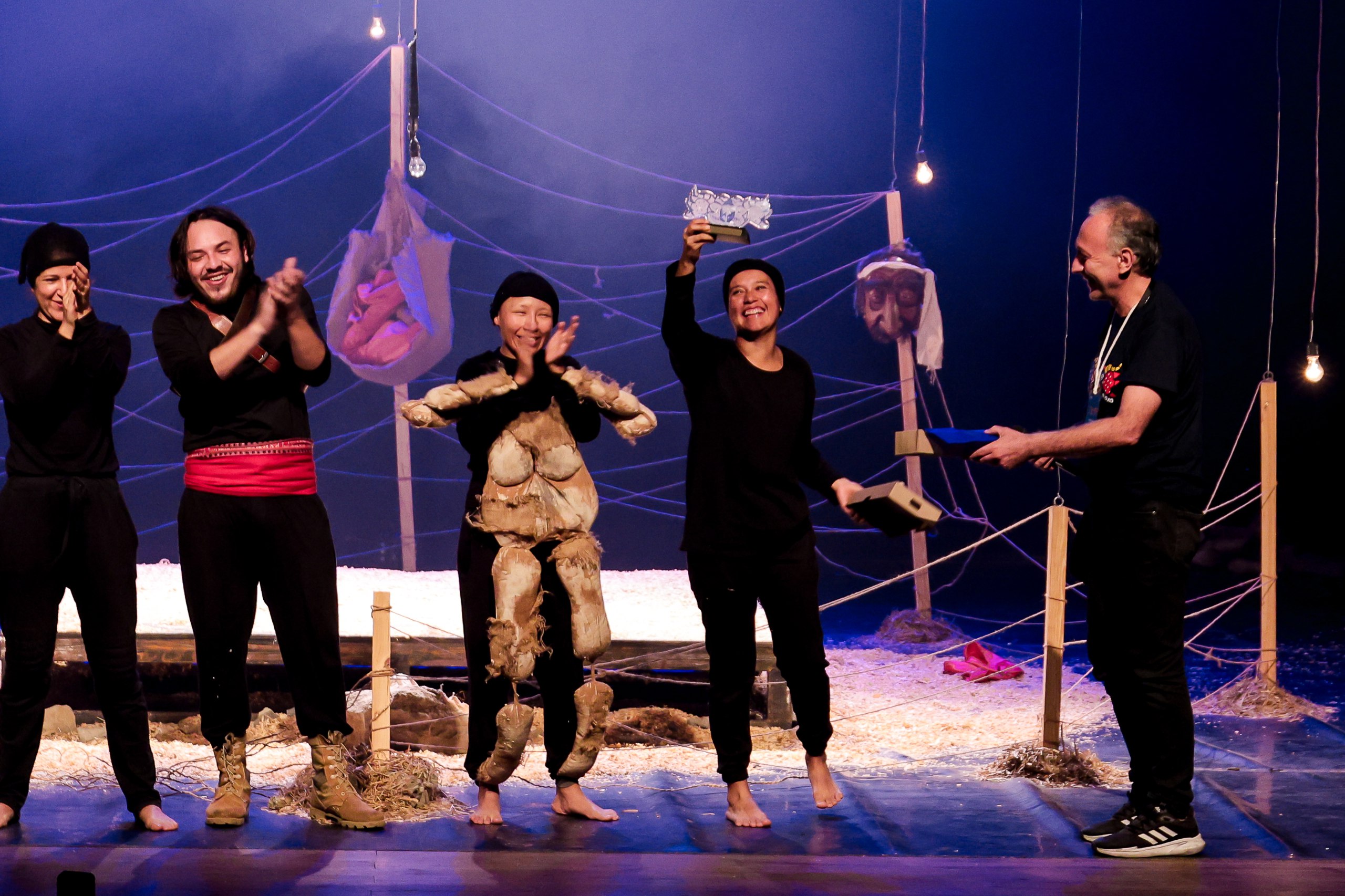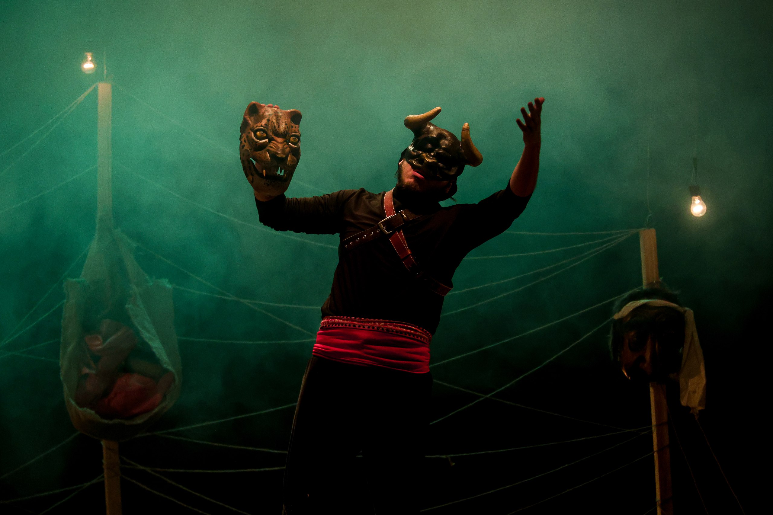 “Ɨvɨ Maraëɨ, Tierra sin mal”, obra teatral realizada por la compañía Akaraku Teatro, desde Bolivia. Se presentó en la sala Anna Julia Rojas de Unearte los días miércoles 16 y jueves 17 de abril, como parte del Festival Internacional de Teatro Progresista 2025.