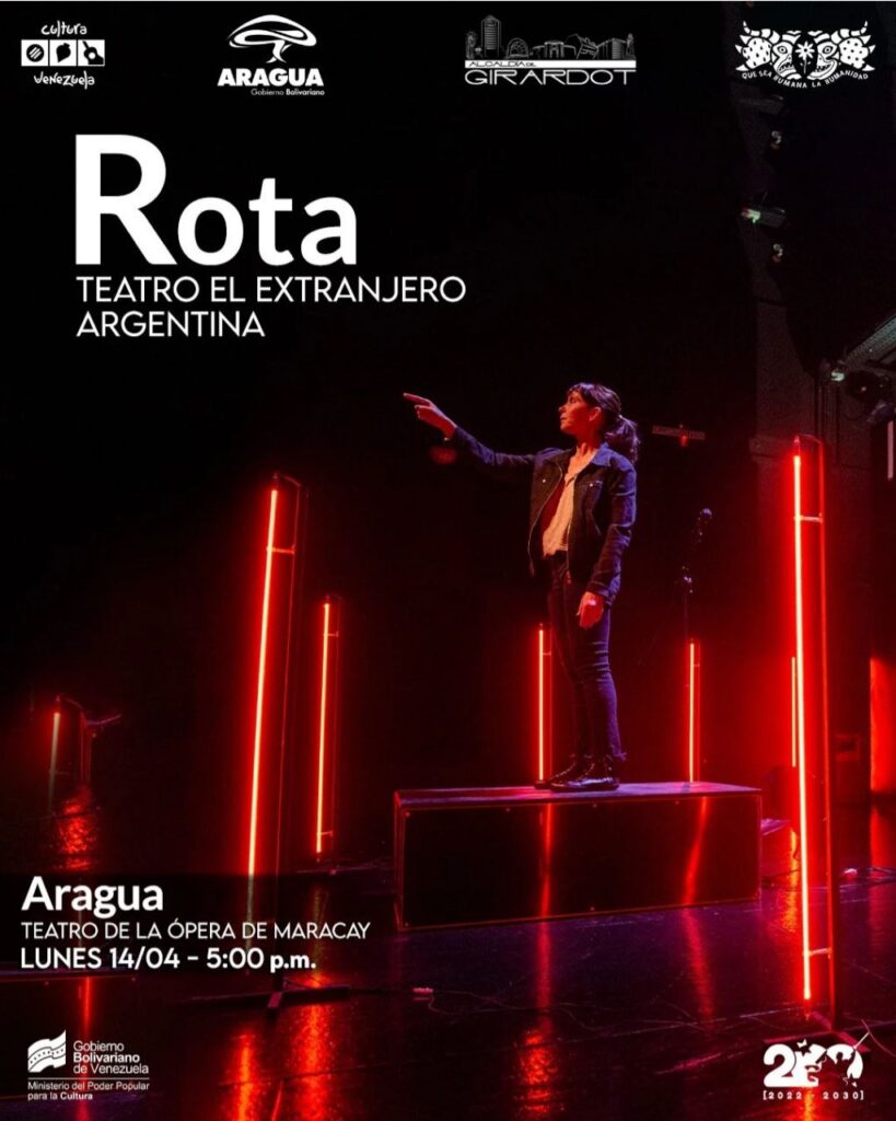 El lunes 14 de abril, a las 5:00 p.m., el Teatro de la Ópera de Maracay recibirá a la agrupación Teatro El Extranjero de Argentina con la presentación de la obra “Rota”. Esta pieza cuenta la historia de una mujer que lucha por reconstruir su existencia tras la muerte de su hijo, quien se suicida luego de haber asesinado a su novia. En medio de su dolor, intenta encontrar algo de comprensión y de amor, al tiempo que cuestiona el papel que jugó como madre en la creación de su “hijito querido” en un monstruo capaz de asesinar, drama que se desvela en la parte final de la obra.