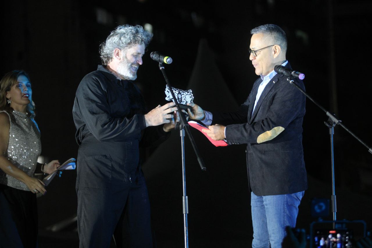 Luego, Villegas felicitó y entregó un reconocimiento a Luciano Trevignani, director de la agrupación teatral Puja, de España, cuyos actores y actrices ya habían realizado un brillante participación el día anterior. Elogió su calidad escénica. “Ya es la segunda vez que estamos acá, y nos llevan de mucho power. ¡Muchas gracias!”, exclamó muy contento Trevignani.