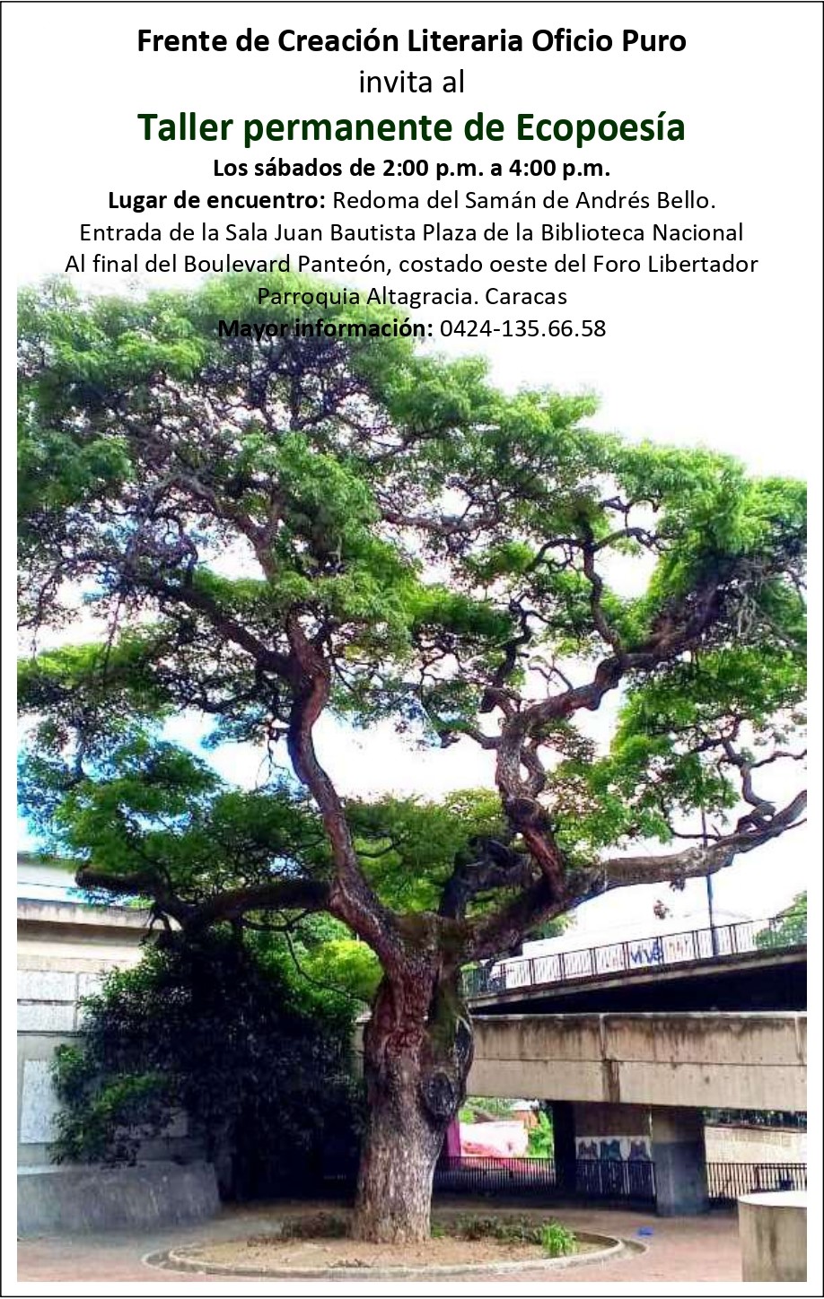 Las actividades del Taller de Ecopoesía forman parte de la Campaña en defensa del Samán de Andrés Bello y Bosques del Foro Libertador, que diversas agrupaciones culturales y comunitarias llevan adelante.