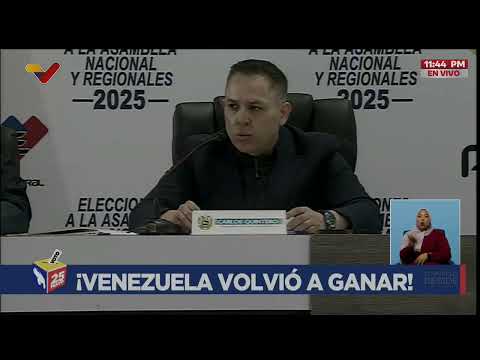 A las 11:40 p.m. de este domingo, el rector principal del Consejo Nacional Electoral, Elvis Amoroso, y el rector Carlos Quintero informaron los primeros resultados de las elecciones de gobernadores, diputados a la Asamblea Nacional y consejos legislativos, realizadas este 25 de mayo.