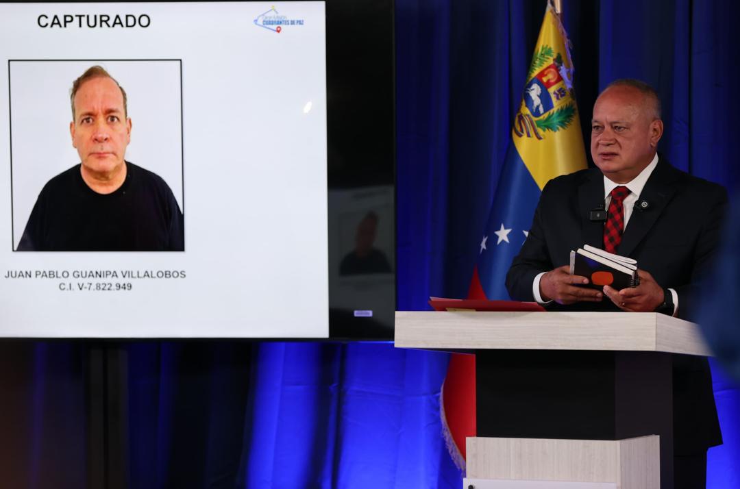 “Durante el día de ayer (…) y hoy, en este momento, los organismos de seguridad del Estado están actuando en el desmantelamiento de este grupo terrorista”, señaló Cabello. “La madrugada de hoy hemos capturado a uno de los jefes de este poderoso grupo terrorista, Juan Pablo Guanipa Villalobos”. Esa es la razón por la cual se desplegaron cuerpos de seguridad alrededor de diferentes instalaciones para protegerlas, indicó.