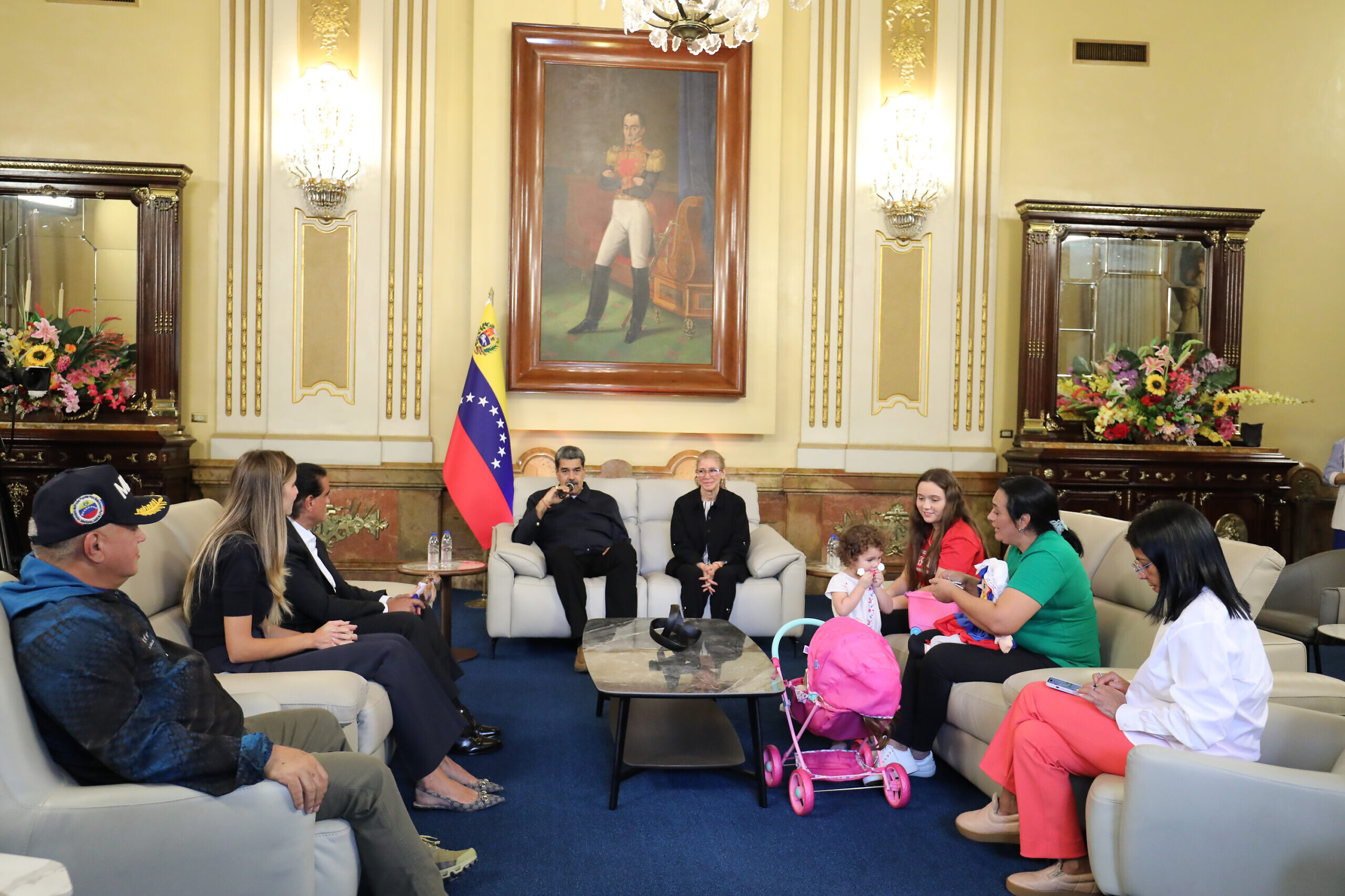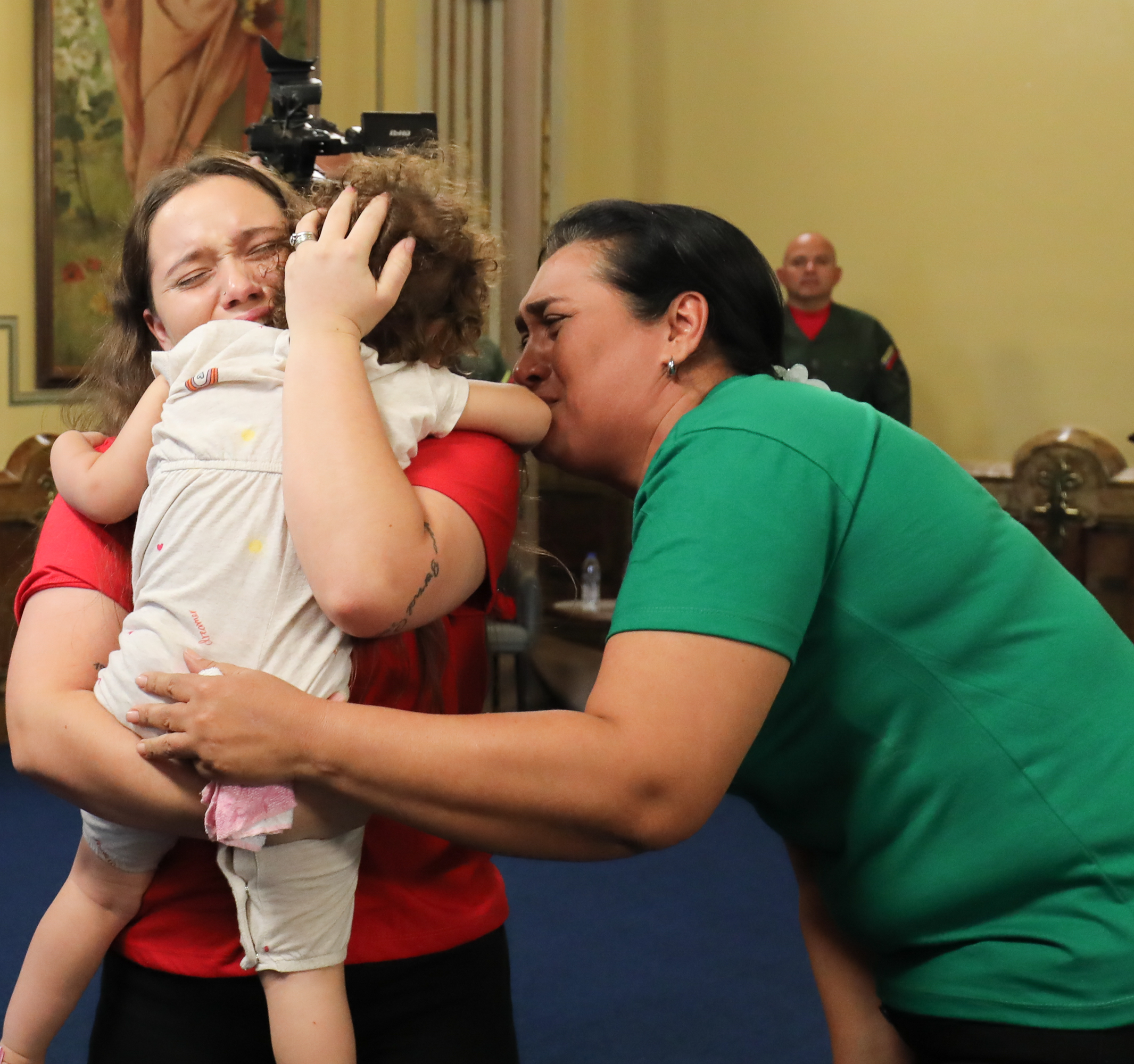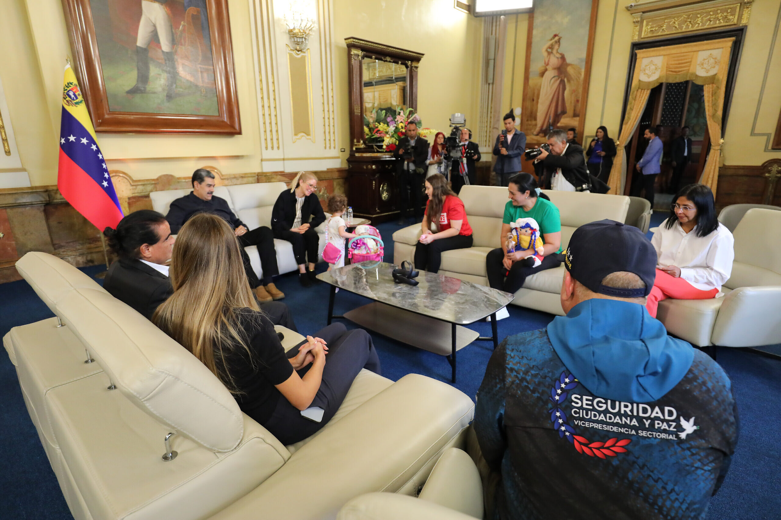 “Quiero agradecer el amor, la solidaridad de todas las madres, abuelas y al pueblo de Venezuela para esta familia que hoy se reencuentra. Esta niña hermosa, tan linda, tan cariñosa, esa mirada, esos bucles”, añadió el Primer Mandatario nacional.