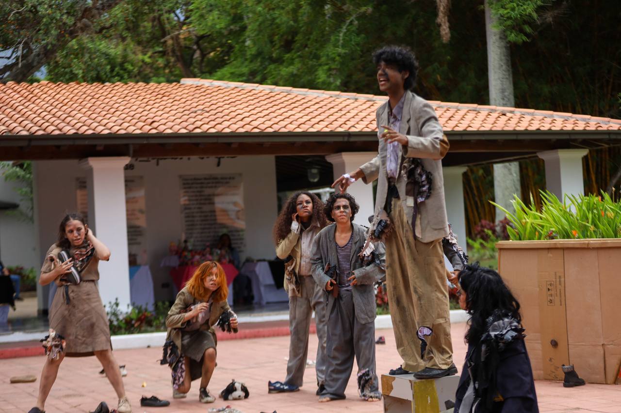 Uno de los momentos más destacados fue la presentación de la obra teatral “Aquiles, el último juglar”, a cargo de la Compañía Juvenil de Laboratorio Teatral Ana Julia Rojas, con dramaturgia de Luigi Sciamanna y dirección de Rafael Gil. La pieza, interpretada por un elenco joven y entusiasta, narra la historia de un grupo de mendigos que, tras encontrar un retrato de Nazoa, deciden homenajearlo con representaciones de sus poemas y textos más emblemáticos.