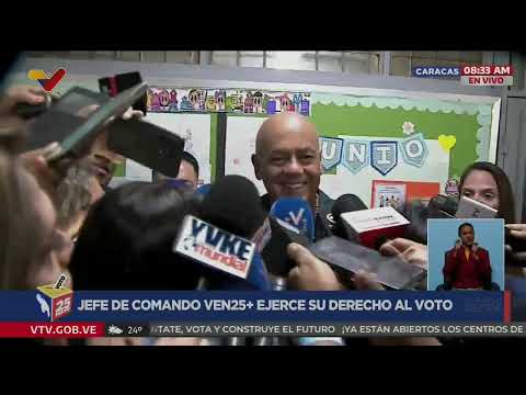Desde la Escuela Ecológica Bolivariana Simón Rodríguez, en Caracas, el jefe del comando Ven25+, Jorge Rodríguez, ejerció este domingo su derecho al voto en los comicios legislativos y regionales, afirmando que es un día histórico porque “ha triunfado la paz”.