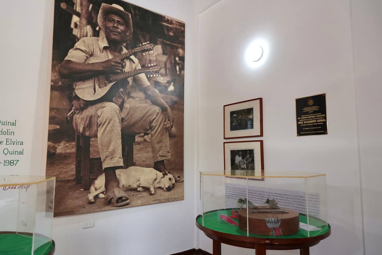 En su interior se exhiben instrumentos musicales fabricados por Quinal: el bandolín, el bandolín morocho, la escarpandola, el violín, la guitarra, el tres y las maracas.