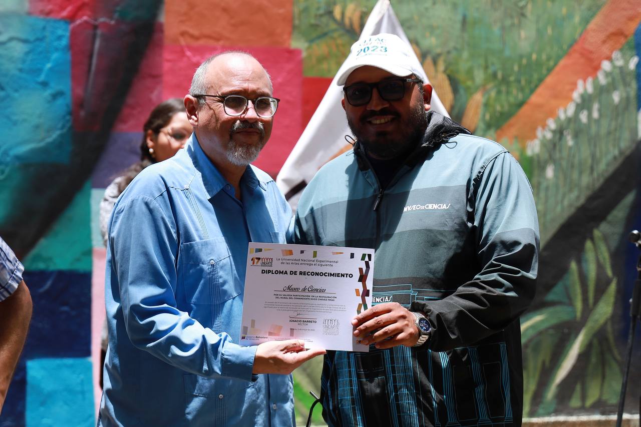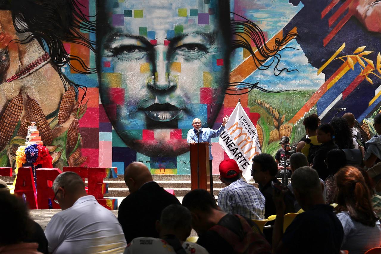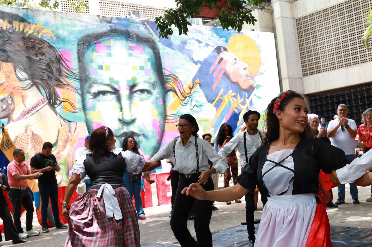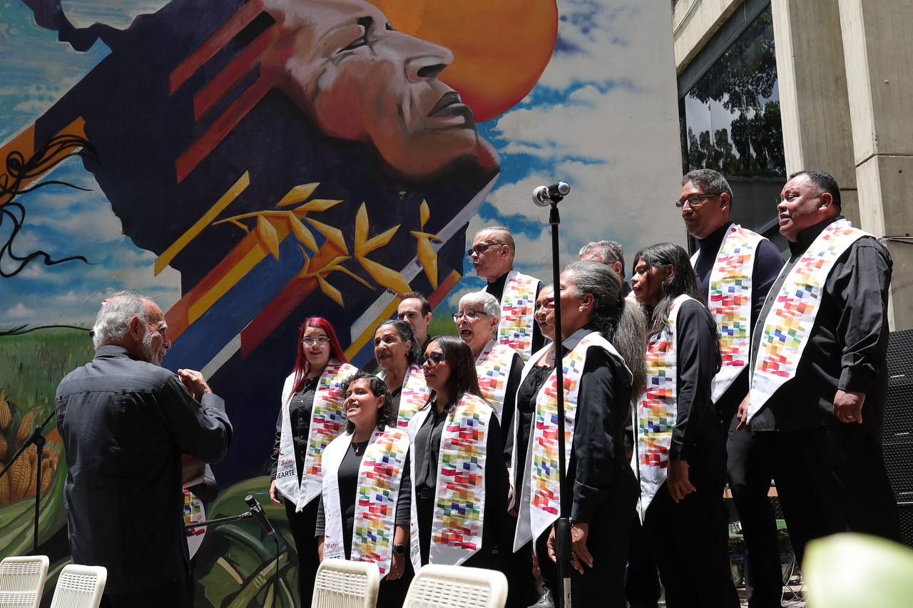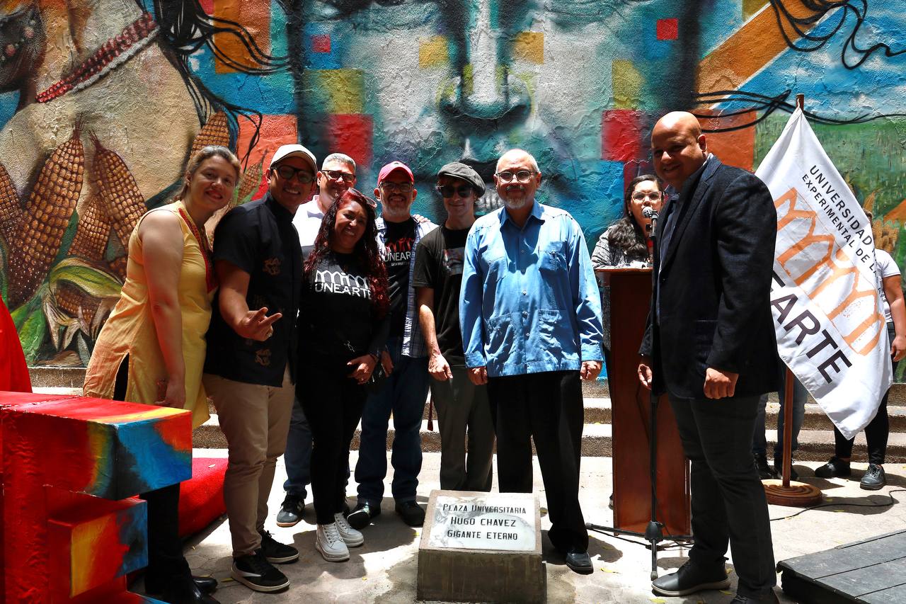 En tal sentido, el evento estuvo marcado por la reinauguración de la plaza universitaria Hugo Chávez, anteriormente conocida como plaza Aquiles Nazoa, un espacio que vuelve a la vida con fuerza simbólica, y que también alberga un mural restaurado que rinde tributo a la presencia viva del pensamiento y espíritu chavista en la UNEARTE.
