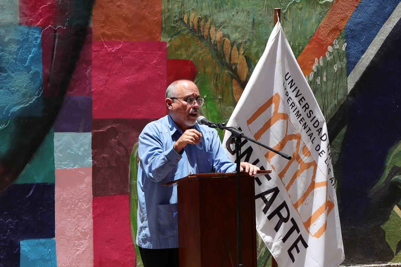El rector de Unearte, Ignacio Barreto, compartió unas sentidas palabras en las que destacó la diferencia profunda entre esta universidad y los modelos tradicionales de enseñanza artística, a las que llamó de élite.