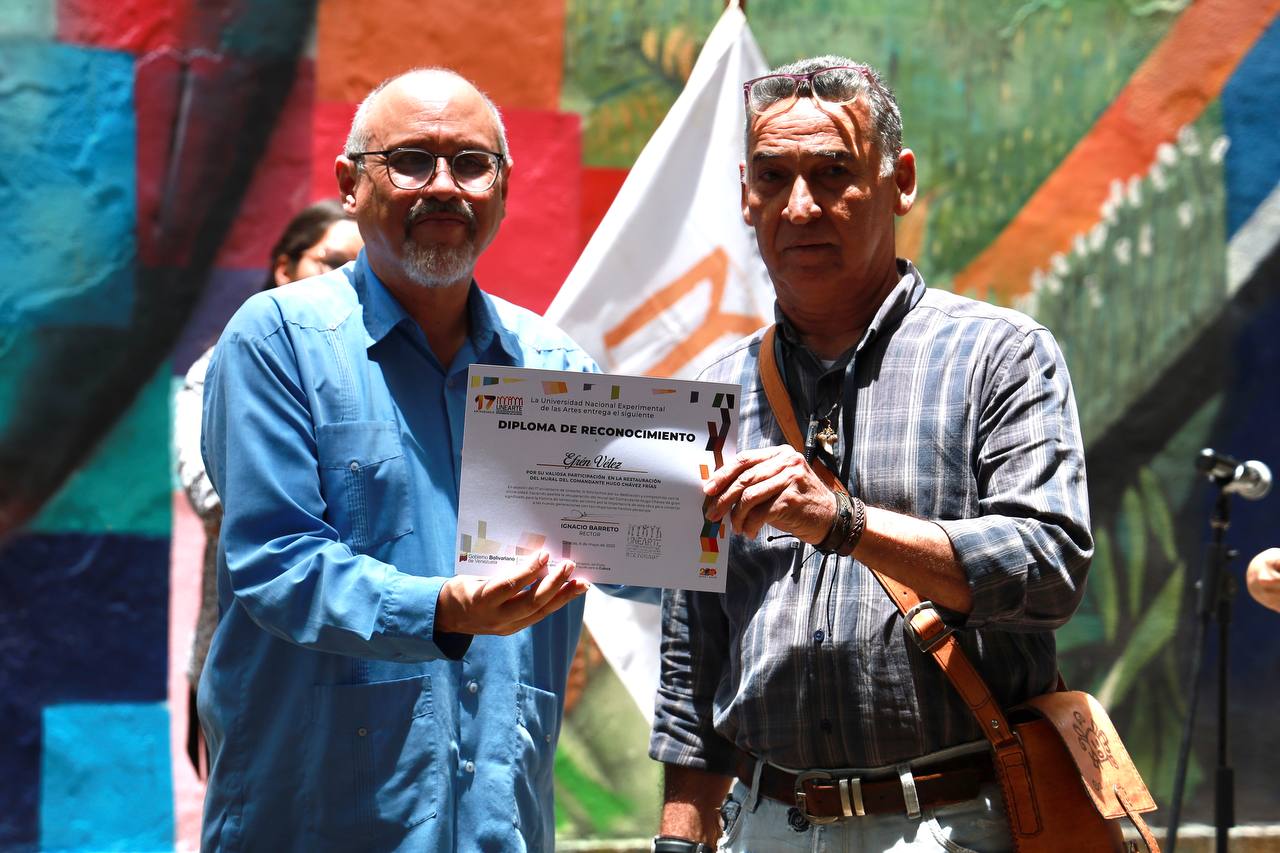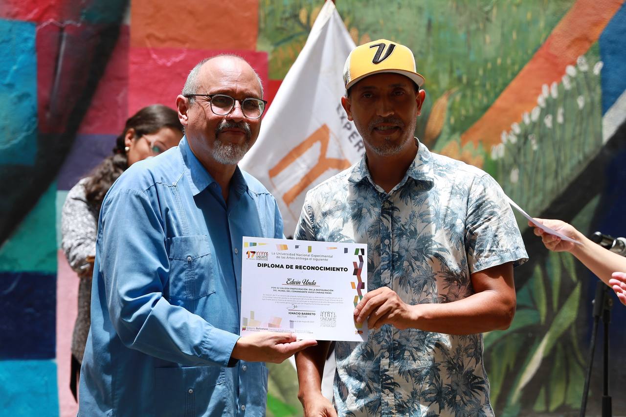 Asimismo, en el acto se develó una placa conmemorativa y se entregaron reconocimientos a los artistas que participaron en la recuperación del mural, cuyo mensaje y estética refuerzan el vínculo entre arte, pueblo y memoria.