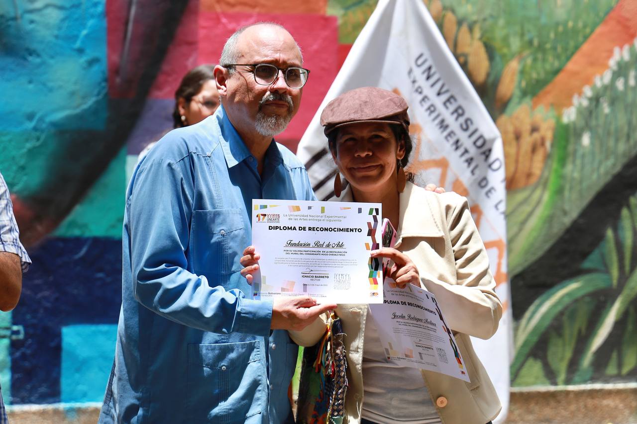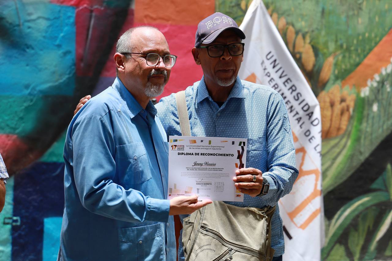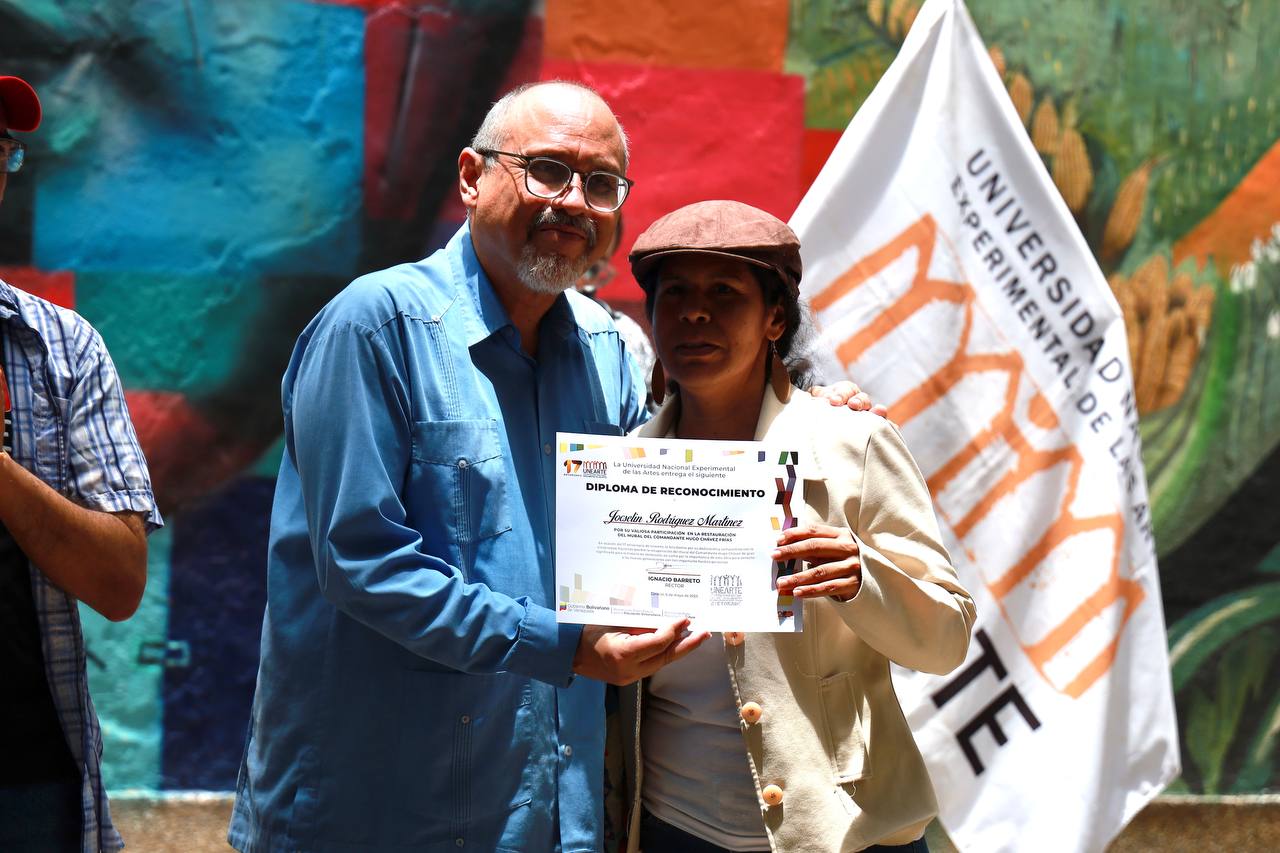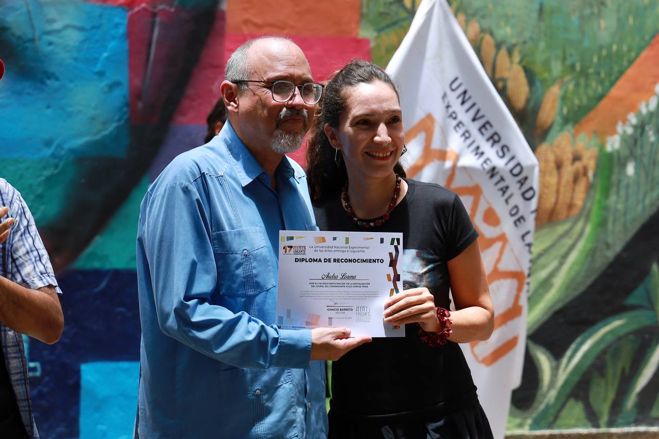 Barreto recordó además que esta casa de estudios nació del sueño bolivariano de Chávez, cuyo proyecto fue la producción artística de la mano con el pueblo: “Donde cada joven se convierte en un sujeto transformador desde su quehacer. Este mural que hoy inauguramos no es solo una obra, es un recordatorio de que la UNEARTE es y será territorio de conciencia, identidad y revolución”, manifestó.