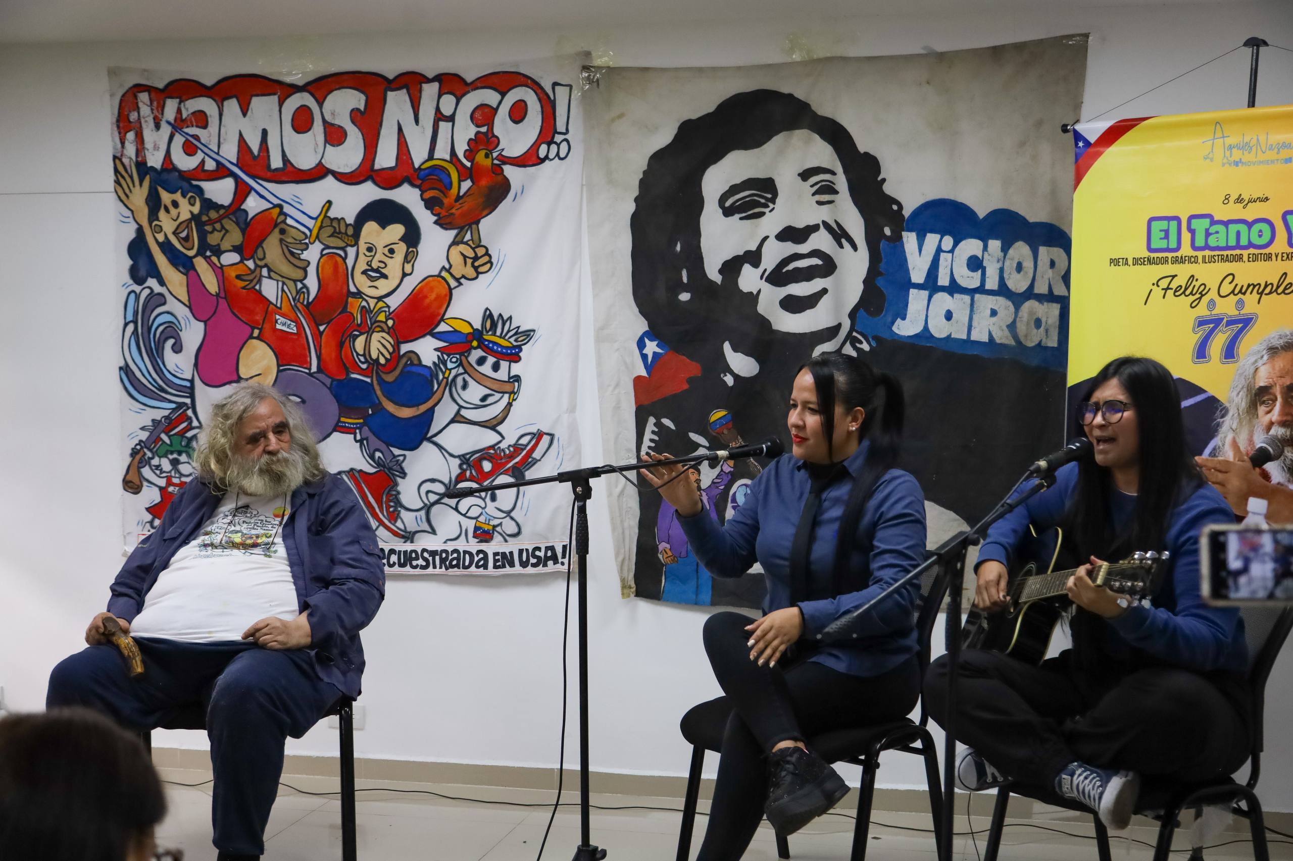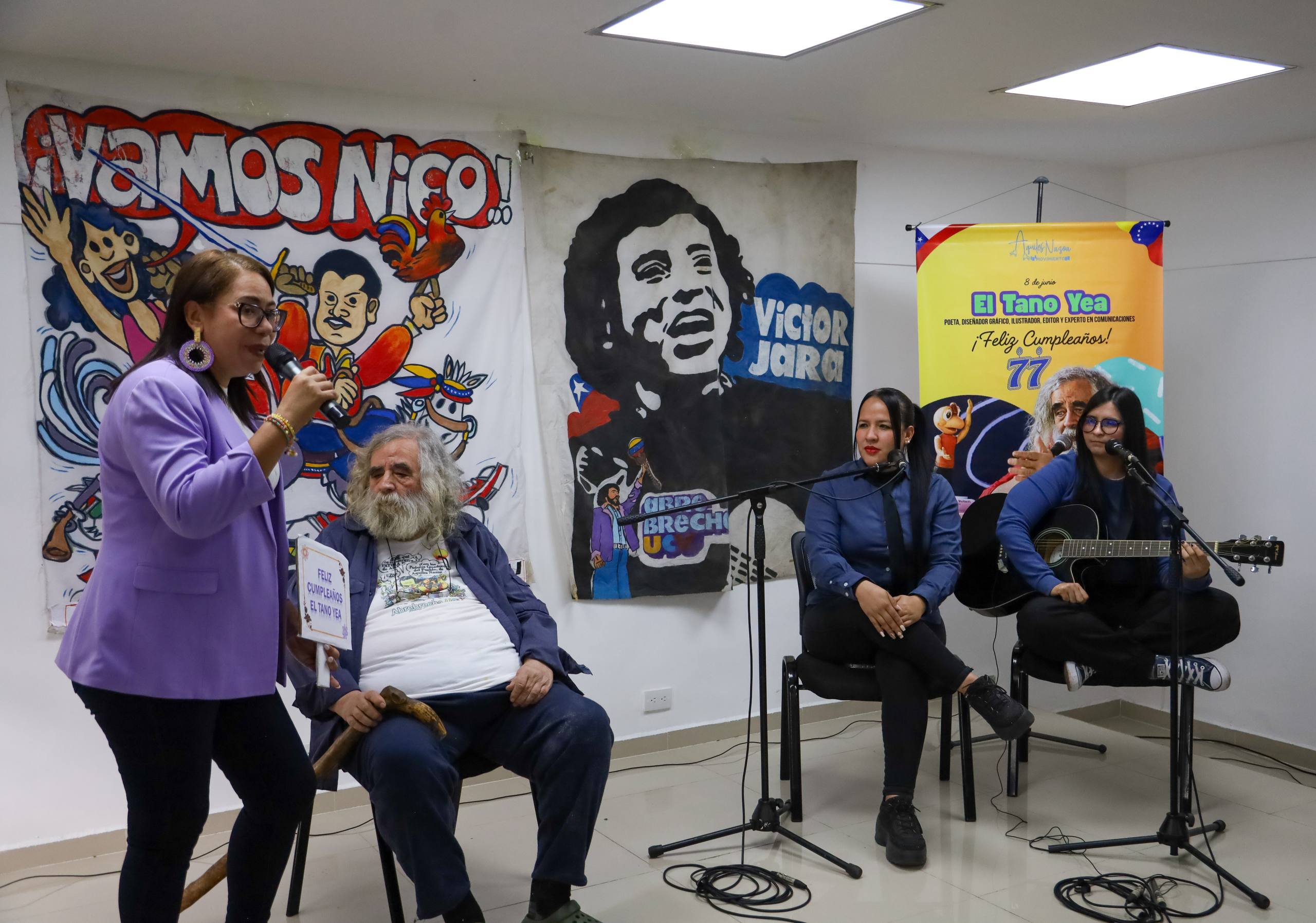 Por su parte, Jimmy Guaraina, del movimiento Aquiles Nazoa, describió a este insigne artista como “un hombre que responde por la cultura, un hombre que enarbola las banderas, un hombre con un gran corazón, el dueño de la ilustración. Hoy celebro sus 77 años con todo mi corazón, un hombre rebelde, que deja huella, un hombre que se hace inmortal dentro de los corazones. El Tano defiende nuestros años, un hombre sembrado en la mente, un hombre que me atrevo a comparar con Alí Primera”.