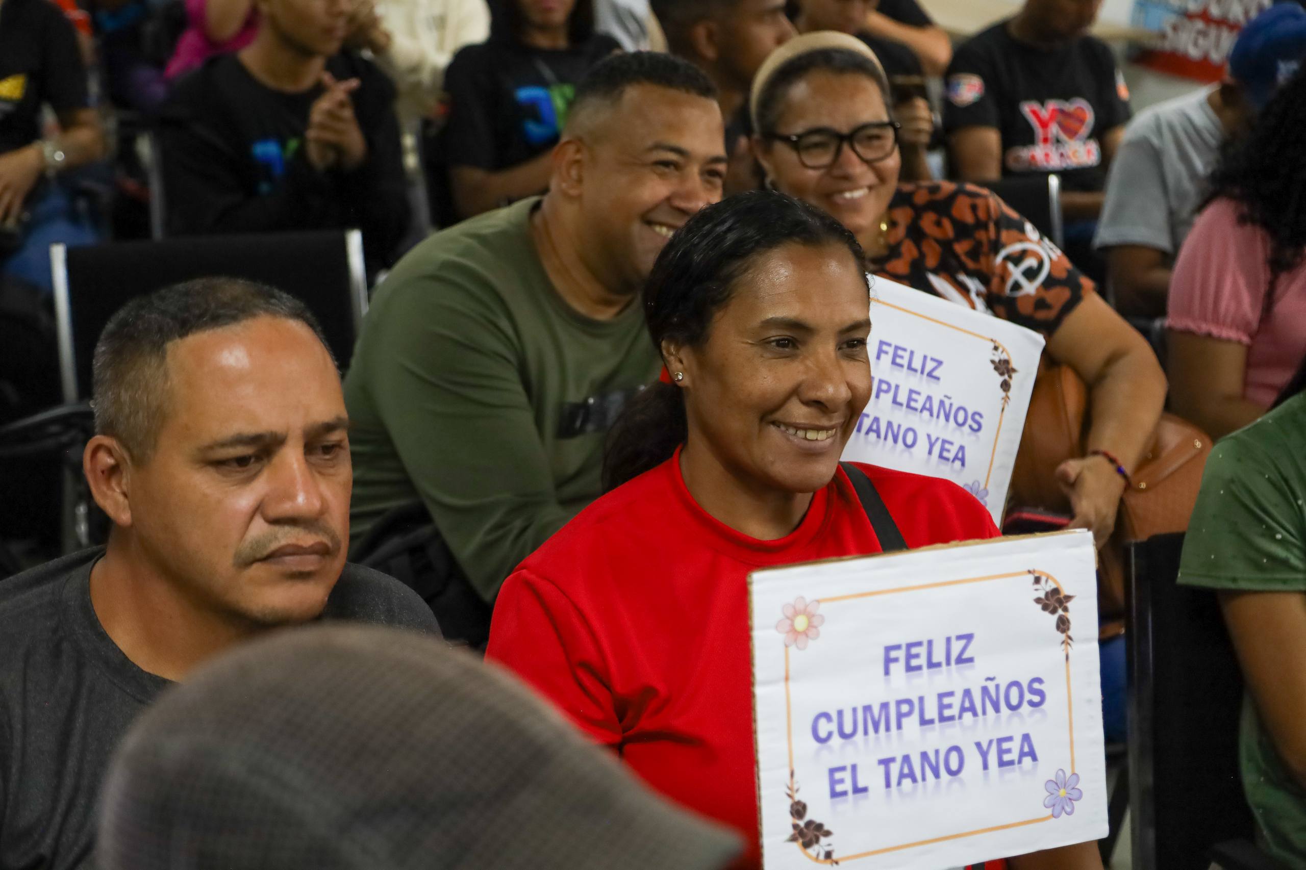 Tomás Pérez “El Tano” visiblemente conmovido, compartió reflexiones, vivencias y anécdotas con la audiencia. “Ustedes me dejaron anonadado. Gracias a mi madrina Karen Millán. Ustedes son una audiencia muy especial, muy cariñosa. Justo hoy quiero apurarme con un libro para mis memorias. Hemos hecho cosas y hay que contarlas. Quiero decirles que la vejez también se lleva en los recuerdos, nunca pensé llegar a los 77 años, todavía tengo un equipo, estoy contento de haberme venido a Venezuela”, relató. “Esas cosas que le pasan a los venezolanos afuera no me sucedieron cuando llegué aquí. Soy un consentido de Venezuela. Me involucré en las luchas de acá”, puntualizó.