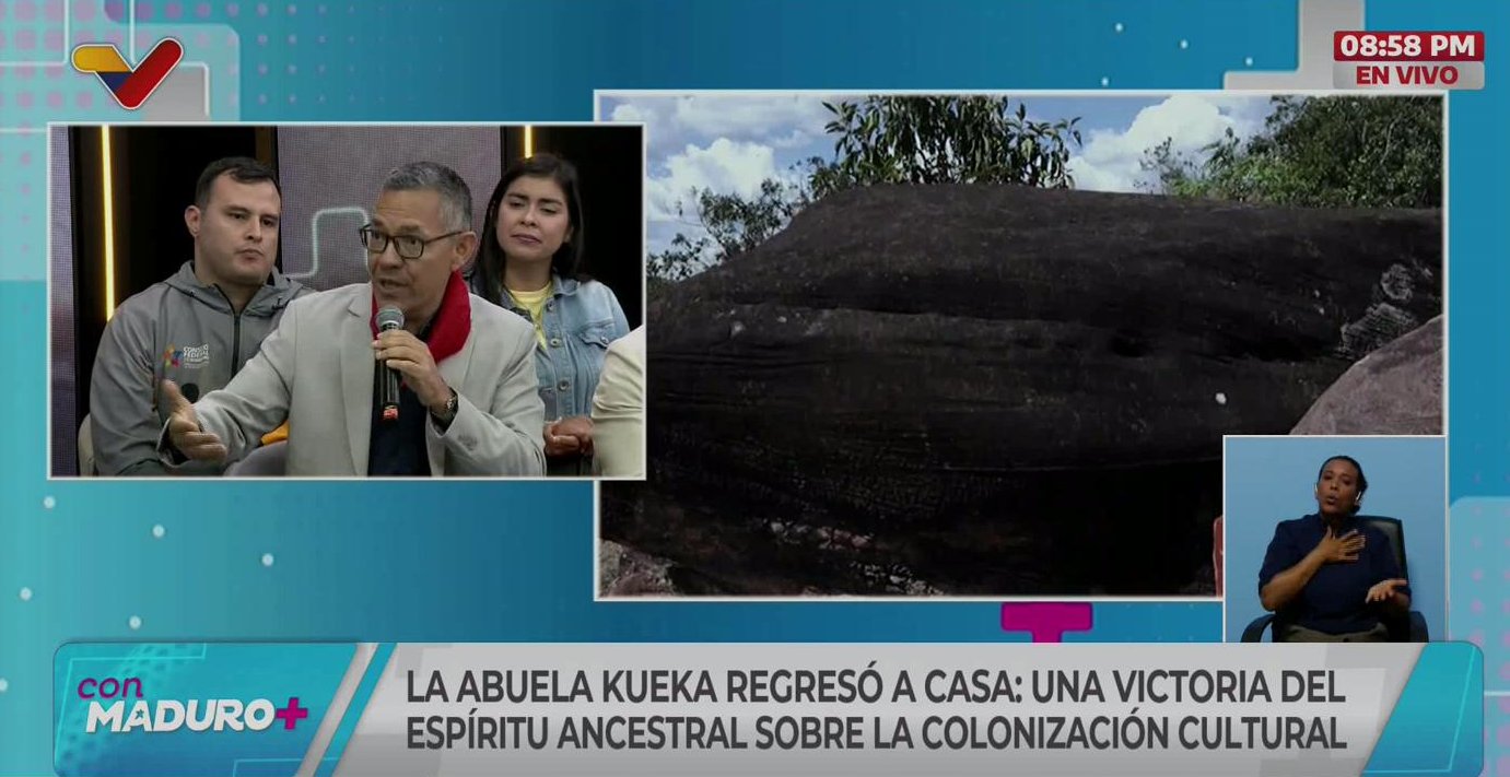 Durante el segmento +Cultura del programa Con Maduro+, que transmite Venezolana de Televisión (VTV), el ministro del Poder Popular para la Cultura, Ernesto Villegas, explicó que el retorno de la abuela Kueka al lado del abuelo en la Gran Sabana “significa el equilibrio del universo”.