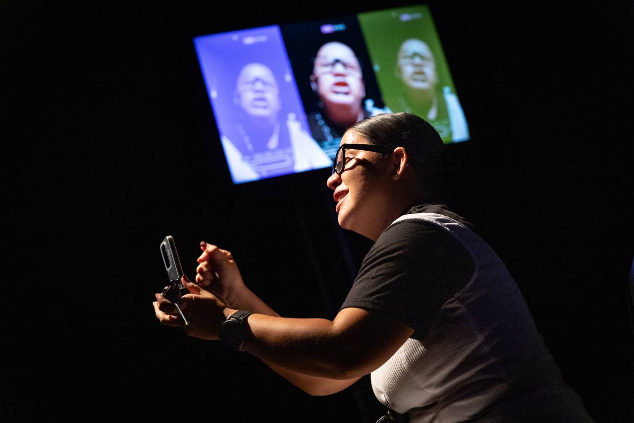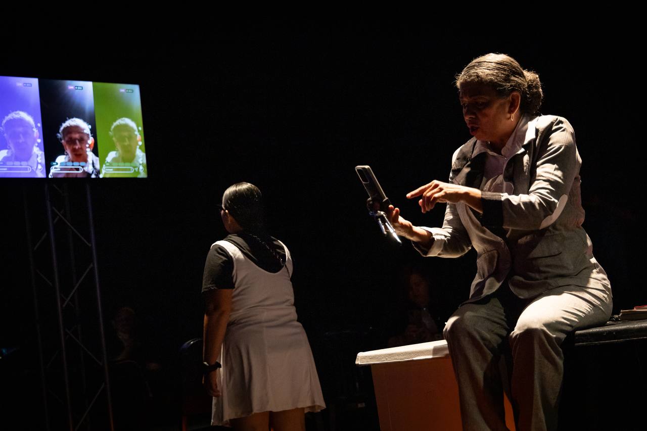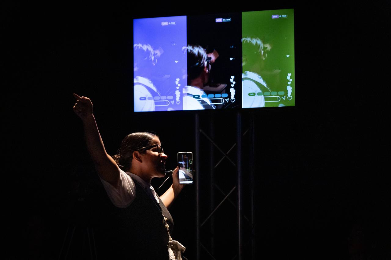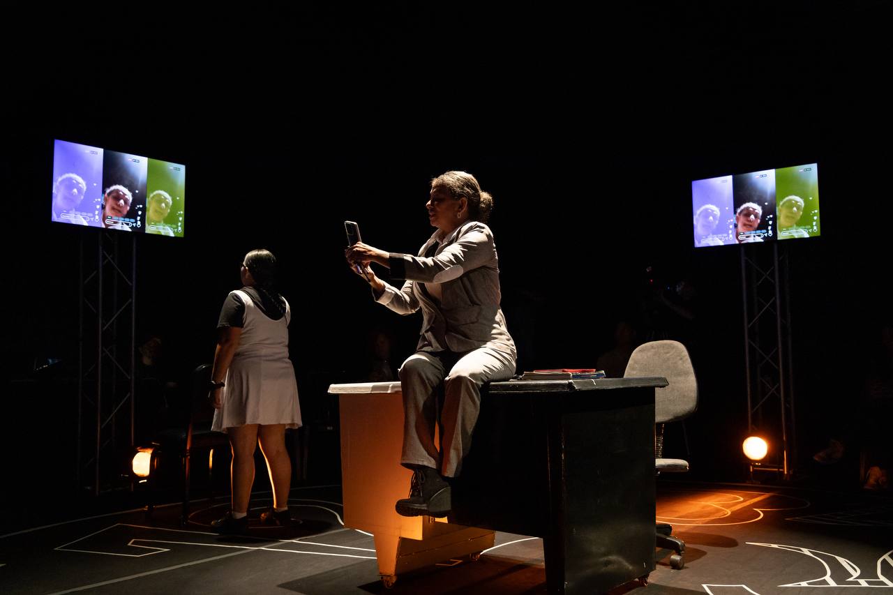 Arroyo destacó que la presencia de recursos audiovisuales, el teléfono móvil y las redes sociales en escena complementan esta propuesta. “El teatro es un elemento social que se utiliza y se transforma como se transforma el ser humano y las sociedades. La utilidad de los recursos contemporáneos le da a la teatralidad un espacio nuevo de metalenguaje (…) En este momento podemos encontrar una quinta pared en el teatro a partir del uso del teléfono, porque es una nueva ventana para ver”, subrayó.