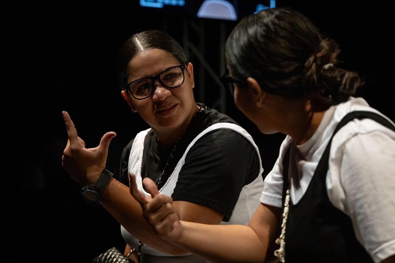 Por su parte, la actriz Karla Arroyo resaltó la exigencia técnica y actoral del montaje de la obra, señalando que ha requerido numerosas horas de ensayo para lograr la precisión interpretativa deseada. Asimismo, su compañera Emilger Arroyo indicó que ha sido un reto representar este texto. “Es muy conmovedor y para nosotros ha sido una gran controversia querer mostrar que son dos madres que parecen ser distintas, pero son la misma moneda con diferente cara”, comentó.