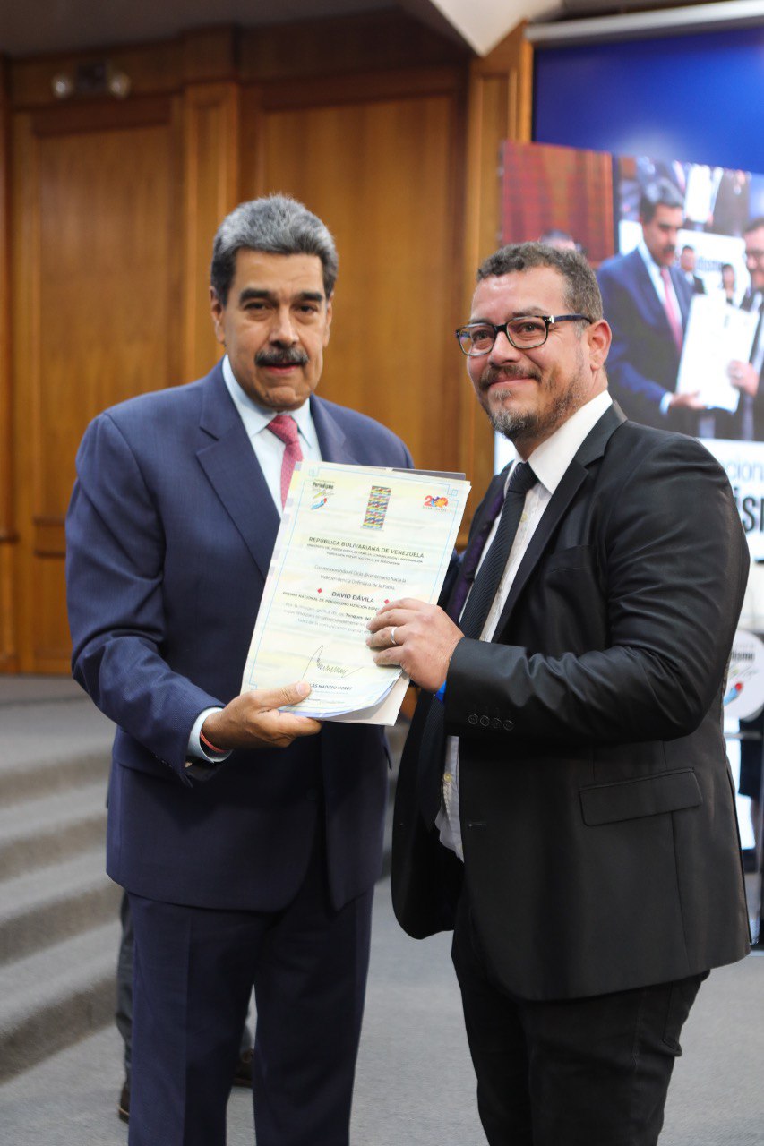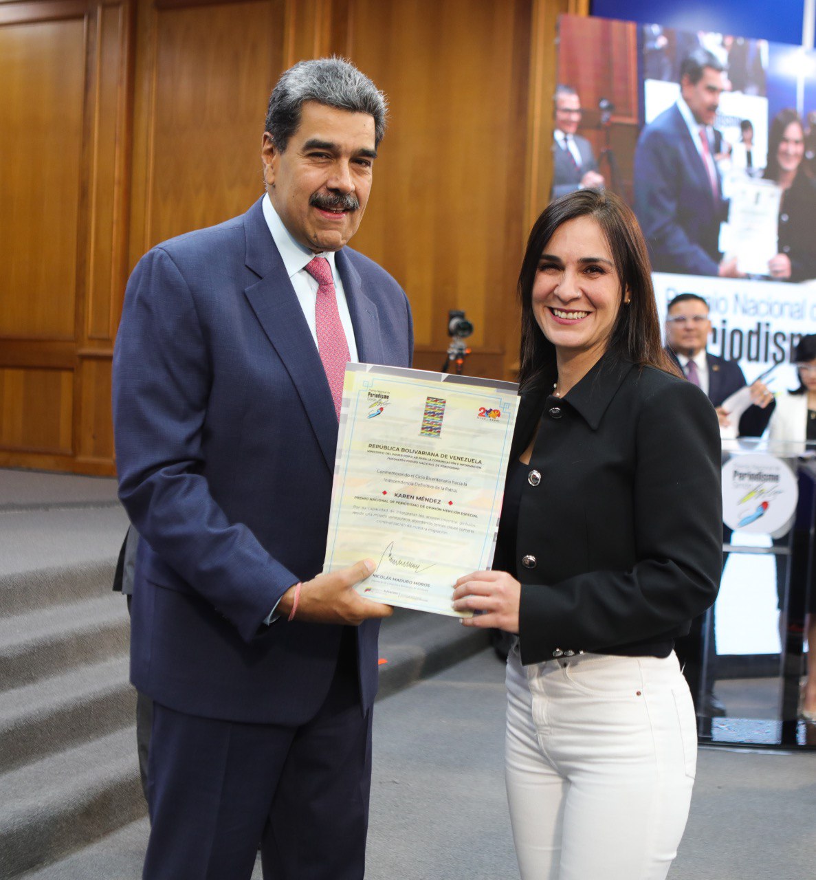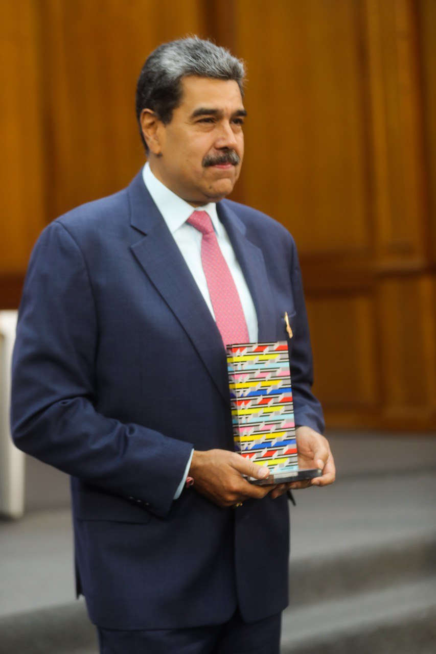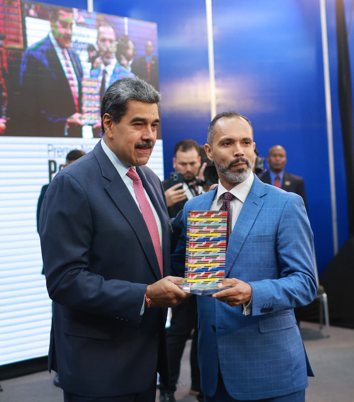 Desde el Salón Ayacucho, el presidente de la República, Nicolás Maduro, lideró el acto de entrega del Premio Nacional de Periodismo Simón Bolívar 2025; como parte del reconocimiento que se le otorga cada año a los profesionales del área, por la trayectoria en el ejercicio profesional y en el cumplimiento de la doctrina y principios éticos de la defensa como norma irrenunciable en el buen periodismo.