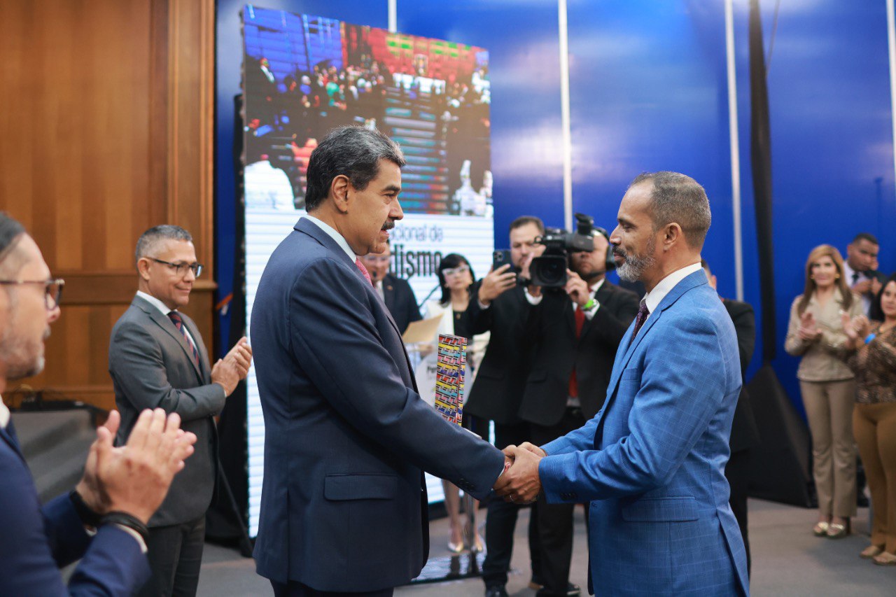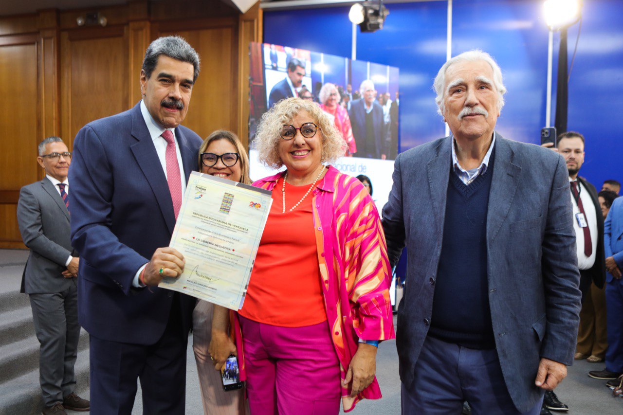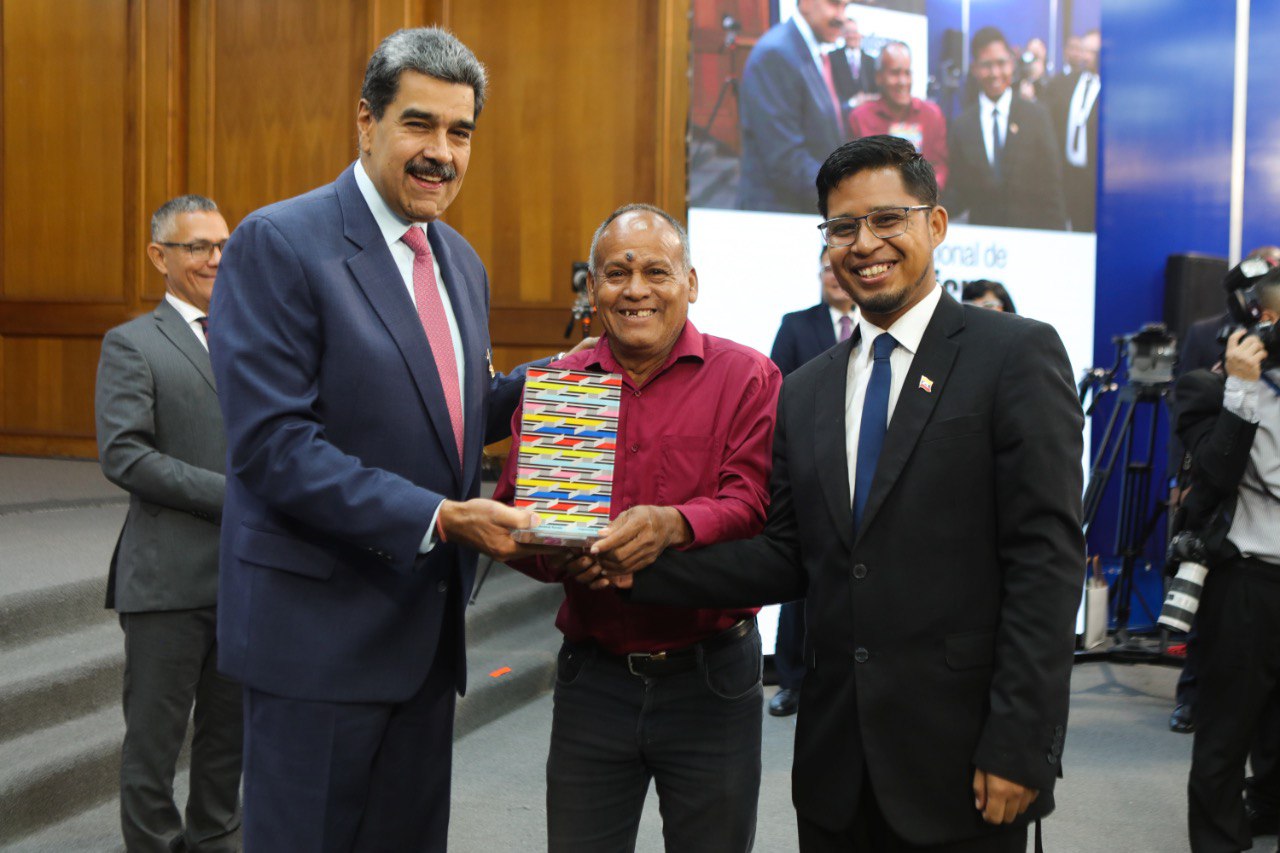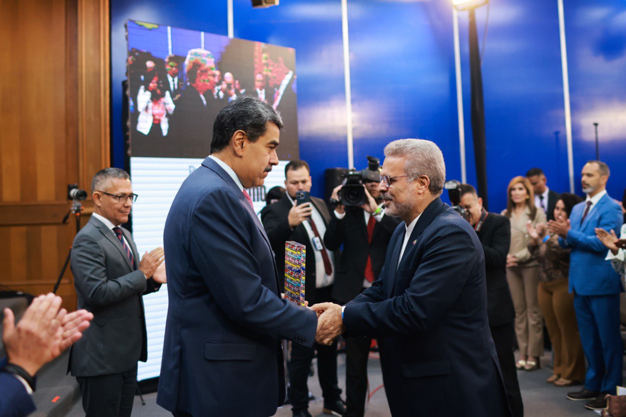 Desde el Salón Ayacucho, el presidente de la República, Nicolás Maduro, lideró el acto de entrega del Premio Nacional de Periodismo Simón Bolívar 2025; como parte del reconocimiento que se le otorga cada año a los profesionales del área, por la trayectoria en el ejercicio profesional y en el cumplimiento de la doctrina y principios éticos de la defensa como norma irrenunciable en el buen periodismo.