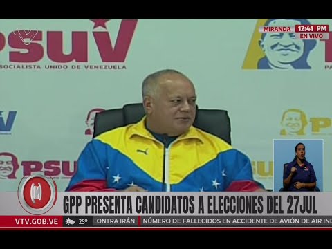 Luego de un profundo proceso de postulación desde las bases de las comunidades, el secretario general del Partido Socialista Unido de Venezuela (PSUV), Diosdado Cabello, presentó la lista preliminar de candidatos y candidatas a las alcaldías y concejos municipales por parte del Gran Polo Patriótico Simón Bolívar (GPPSB), que se medirán en los comicios del 27 de julio.