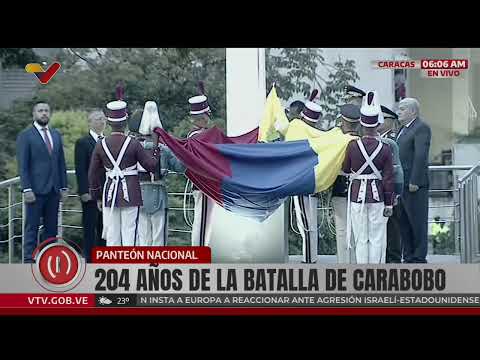 Con el izamiento de la Bandera Nacional frente al Panteón Nacional, por parte de cadetes de la Academia Militar de Venezuela y miembros del tren ministerial del Gobierno Bolivariano, comenzaron este lunes los actos conmemorativos por el 204° aniversario de la Batalla de Carabobo y Día del Ejército Bolivariano, una jornada que honra la gesta militar y su profundo significado histórico y cultural para el pueblo venezolano.