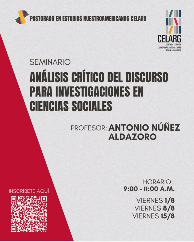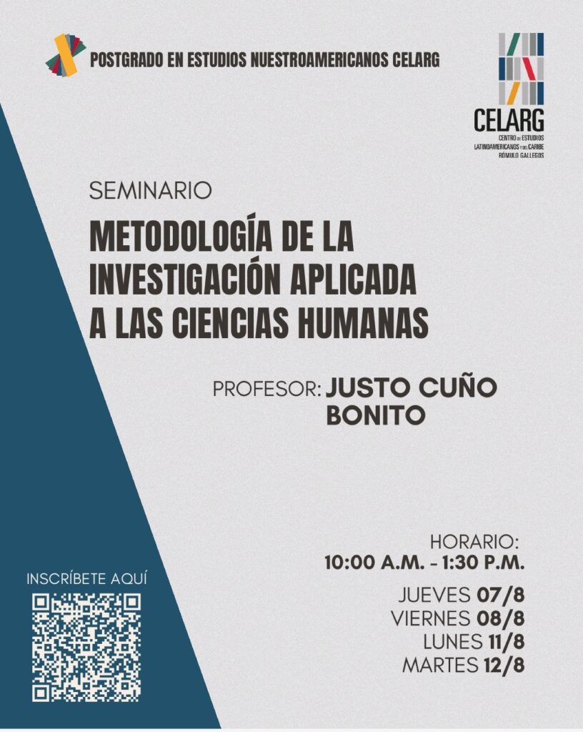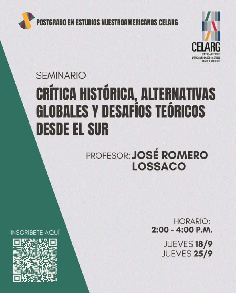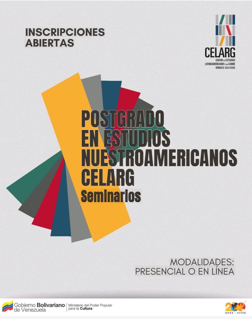 El Centro de Estudios Latinoamericanos y del Caribe Rómulo Gallegos (CELARG) se complace en anunciar el inicio de las inscripciones para una serie de seminarios libres, en el marco del Postgrado en Estudios Nuestroamericanos. Estos seminarios, que se llevarán a cabo entre julio y septiembre de 2025, en modalidades en línea y presencial, ofrecen una oportunidad única para profundizar en diversas áreas de las ciencias humanas y sociales.