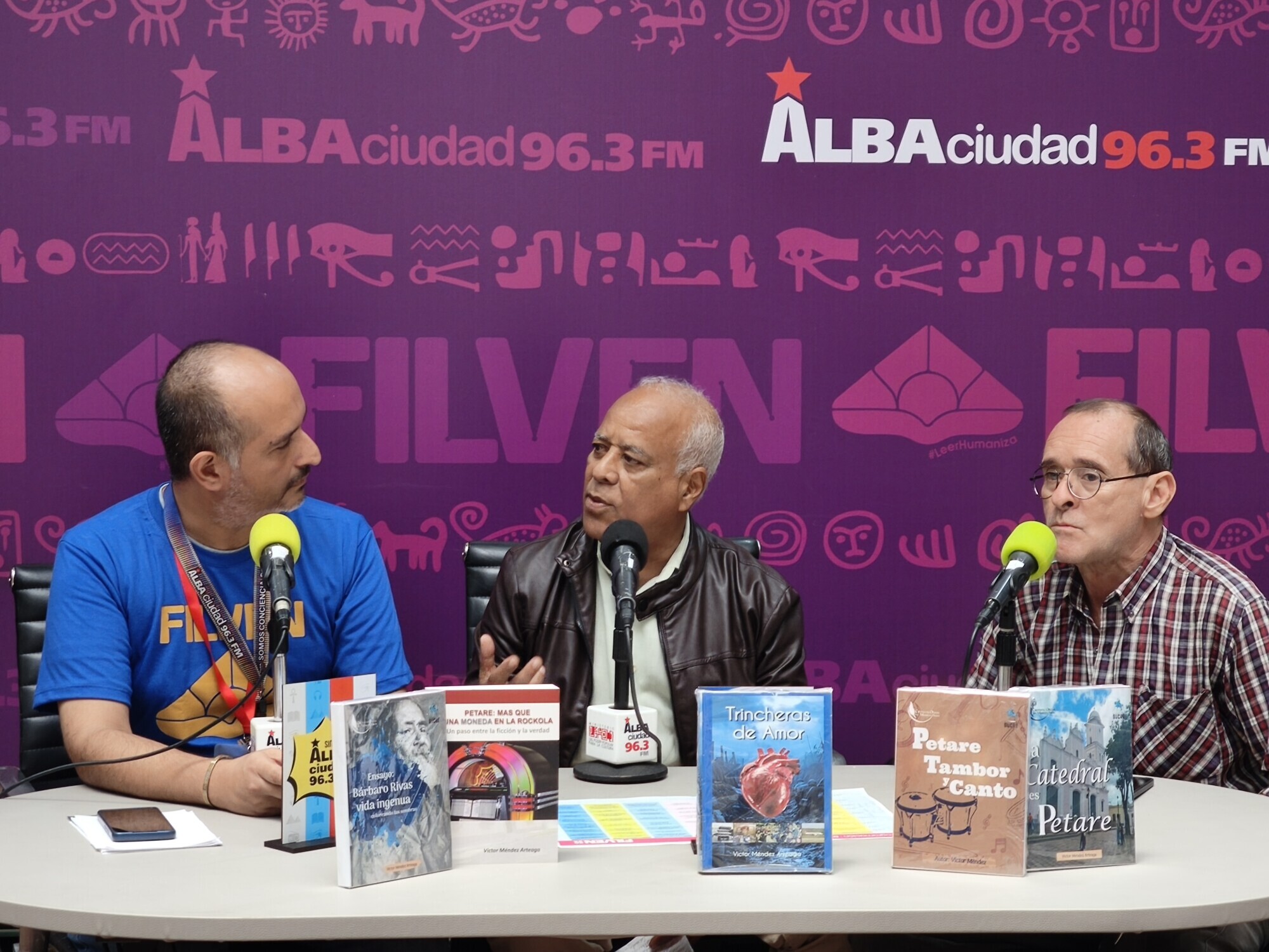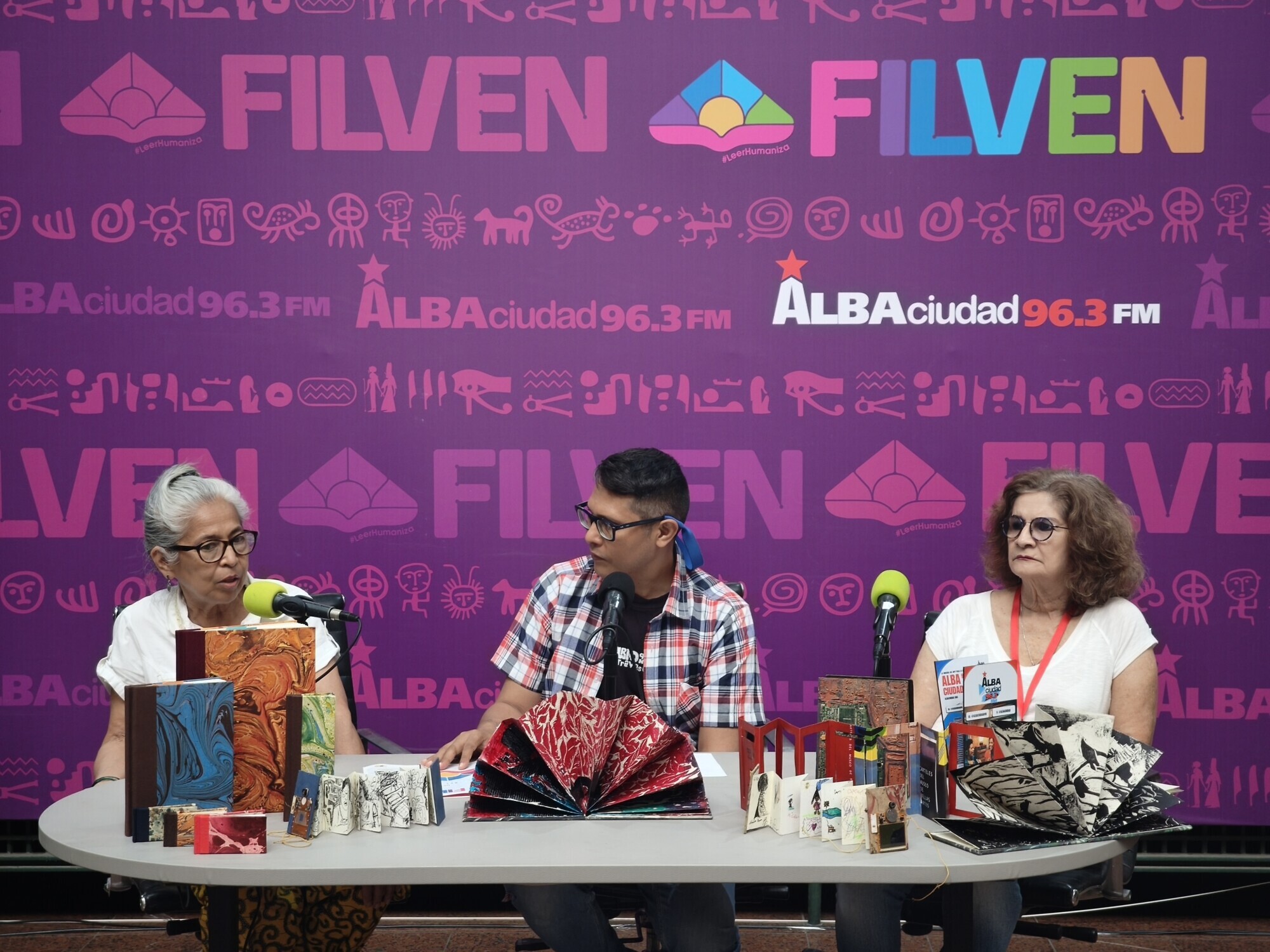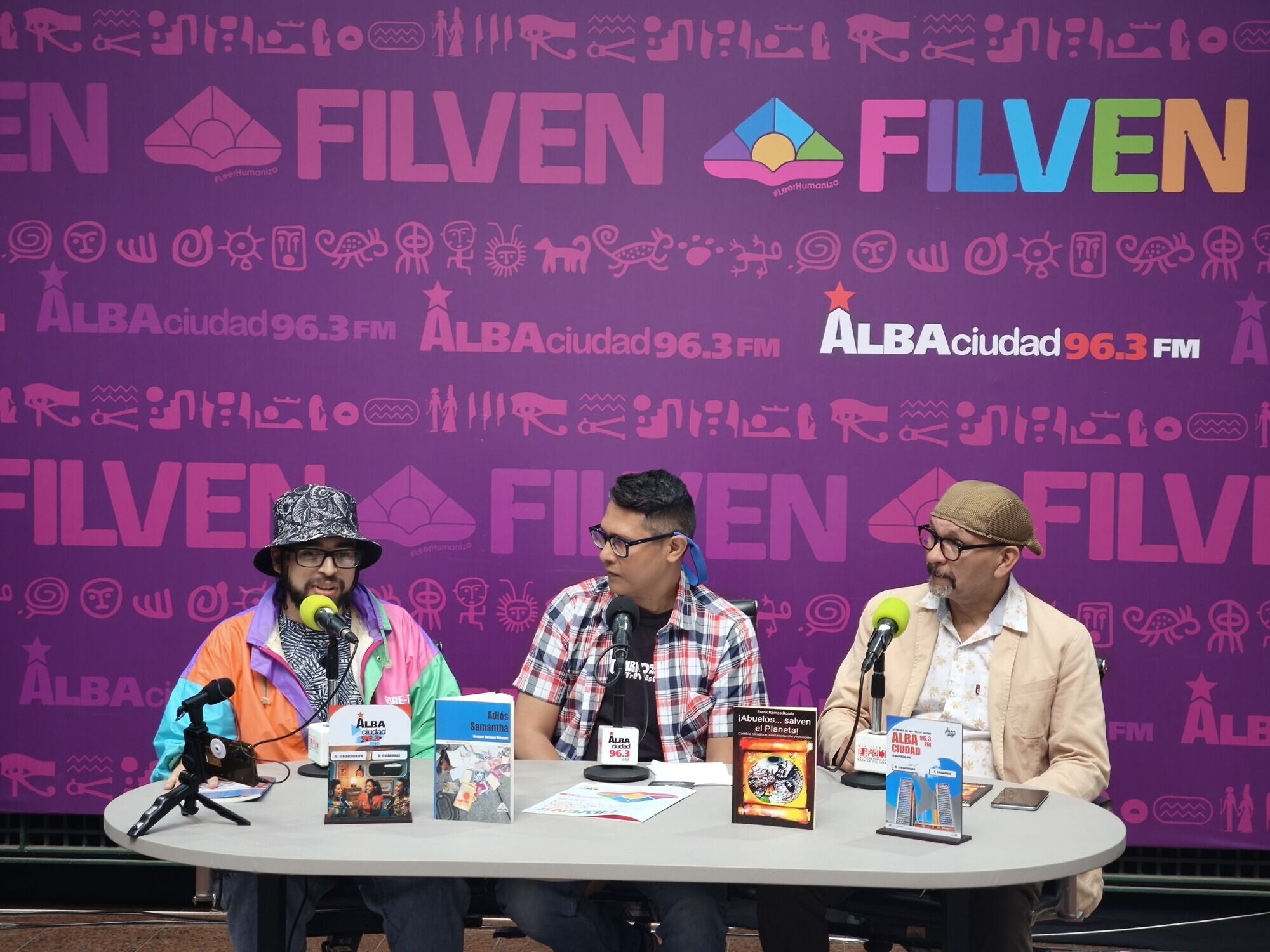 Diferentes autoridades del Ministerio para la Cultura, entre ellas el ministro Ernesto Villegas; el presidente del Centro Nacional del Libro (Cenal), Raúl Cazal; la viceministra de las Artes de la Imagen y el Espacio, Mary Pemjean y el presidente de la Biblioteca Nacional, Jorge Berrueta, fueron entrevistados en el espacio de Alba Ciudad y el canal Cultura Venezuela este domingo 13 de julio, último día de la Filven.