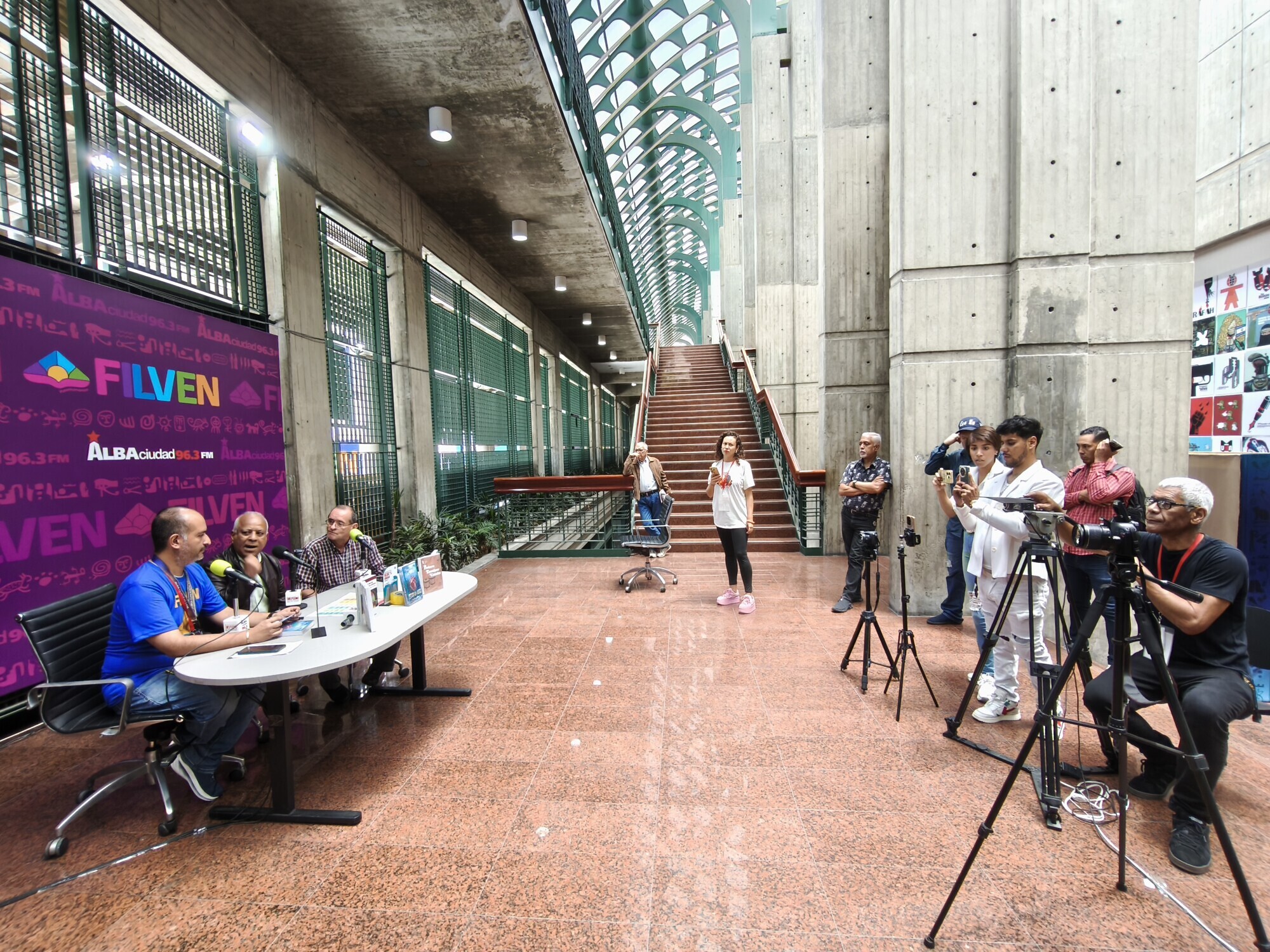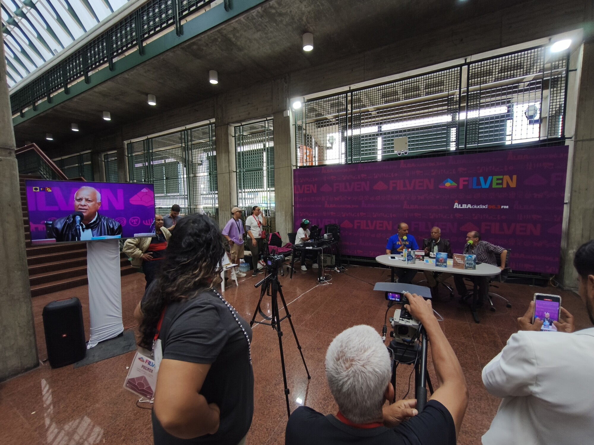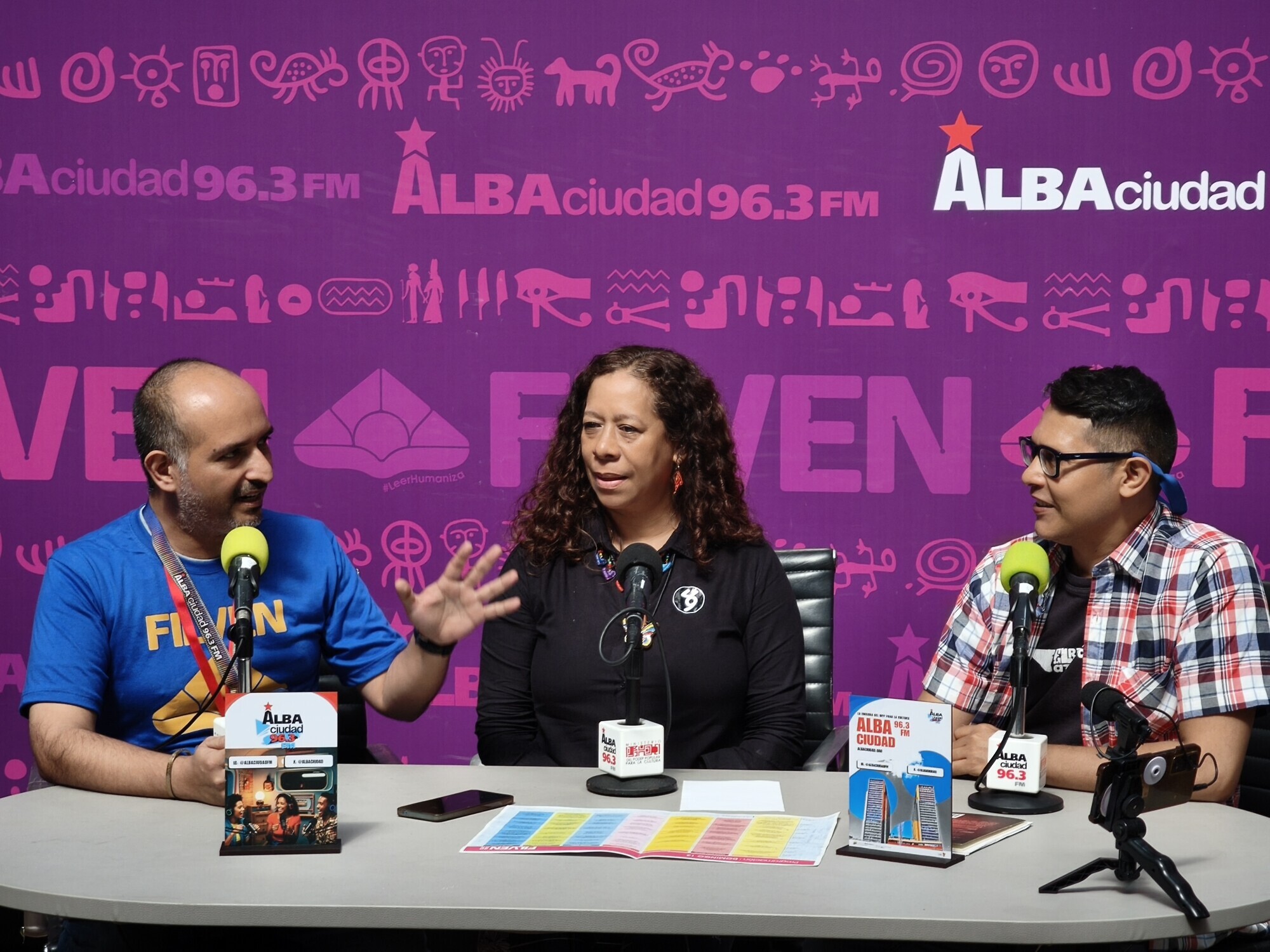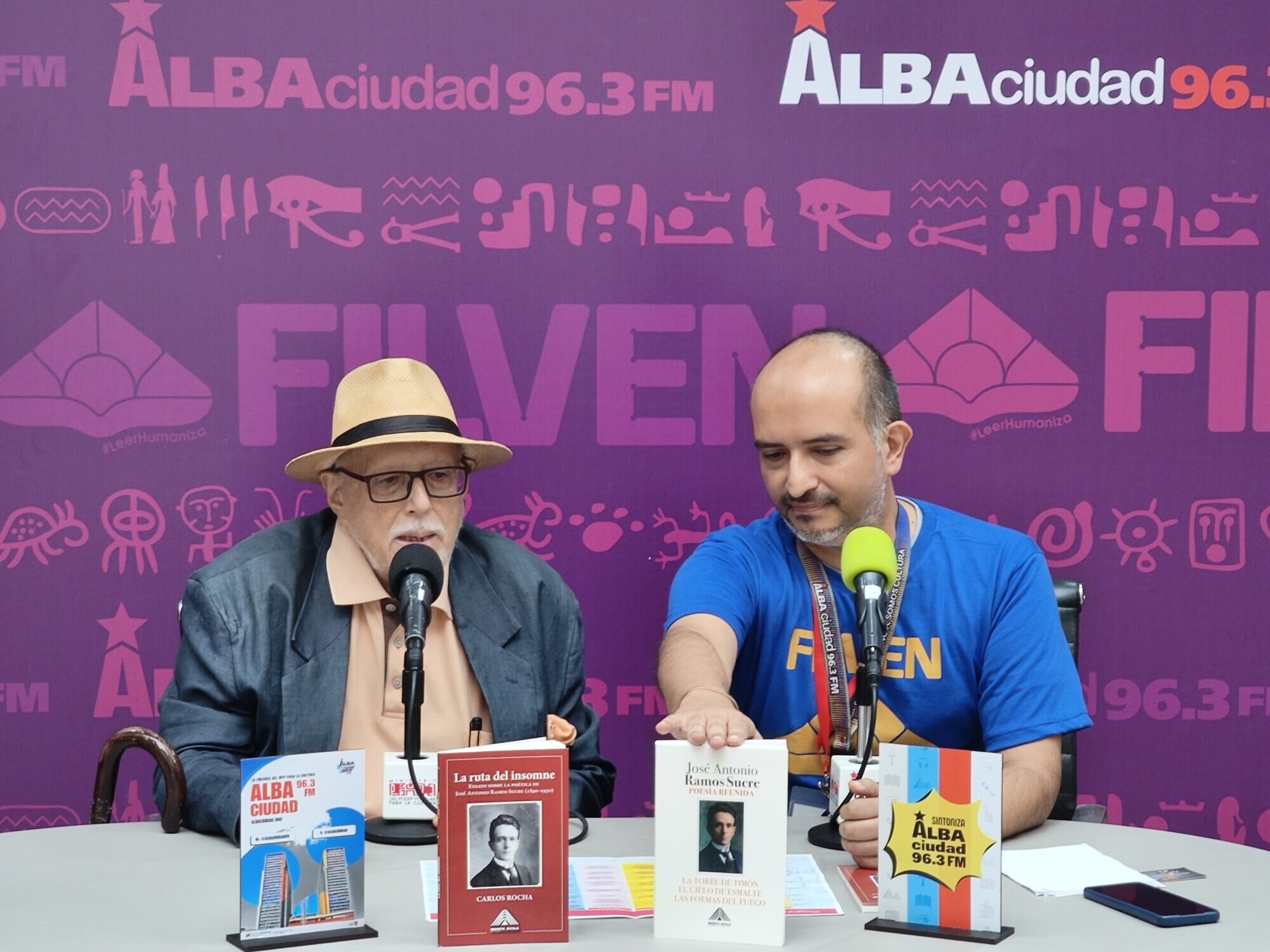 Diferentes autoridades del Ministerio para la Cultura, entre ellas el ministro Ernesto Villegas; el presidente del Centro Nacional del Libro (Cenal), Raúl Cazal; la viceministra de las Artes de la Imagen y el Espacio, Mary Pemjean y el presidente de la Biblioteca Nacional, Jorge Berrueta, fueron entrevistados en el espacio de Alba Ciudad y el canal Cultura Venezuela este domingo 13 de julio, último día de la Filven.