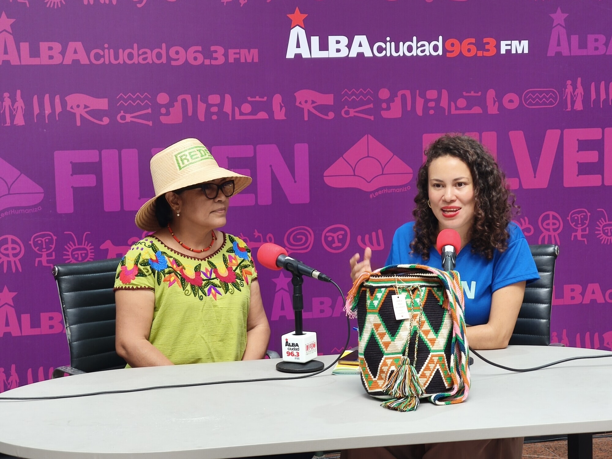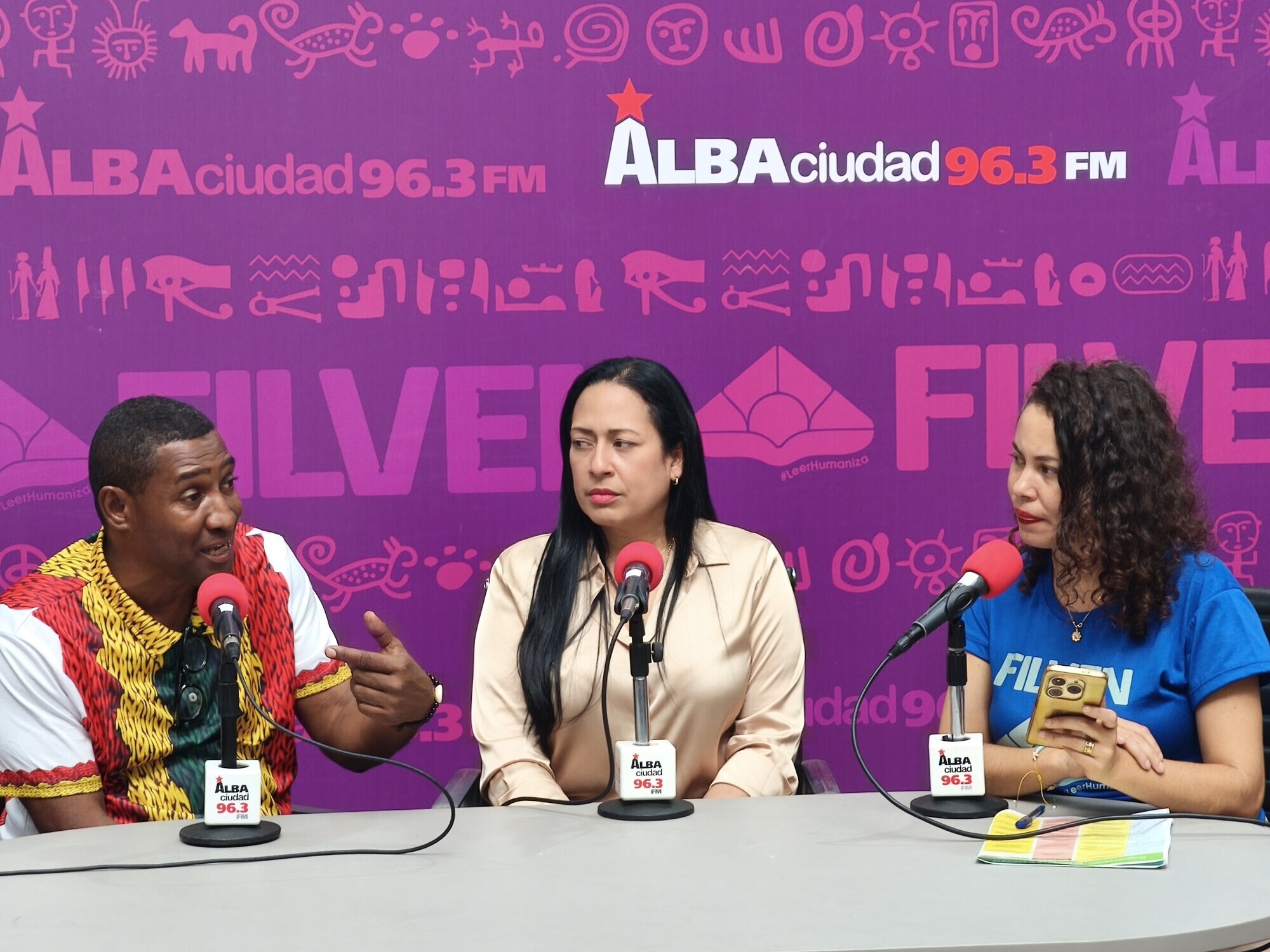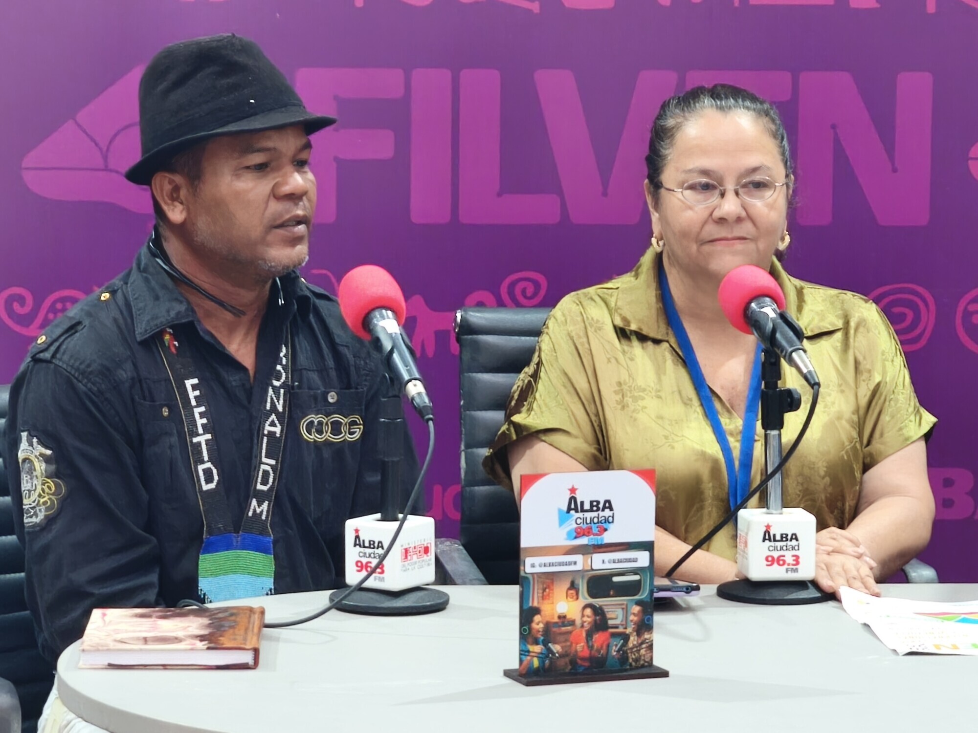 La diputada Casimira Monasterios, Berenice del Moral, visitantes de pueblos originarios, expertos en historia provenientes de Irán y hasta el Libertador Simón Bolívar interpretado por el profesor Juan Gámez, nos visitaron este miércoles en el espacio que Alba Ciudad 96.3 FM y el Canal Cultura Venezuela mantienen en la Feria Internacional del Libro de Venezuela, Filven 2025, que se realiza hasta el 13 de julio en la Galería de Arte Nacional y la Plaza de la Juventud en Caracas. ¡Conózcalos!