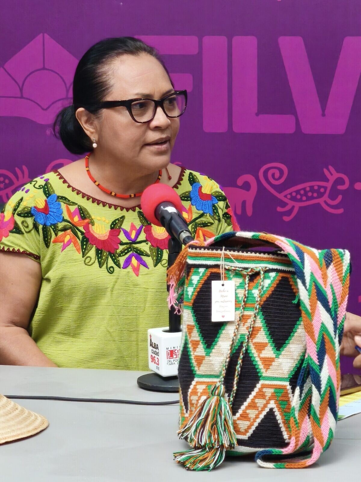 Tempo es secretario ejecutivo del Instituto Nacional de Idiomas Indígenas. Poseen un stand en la Filven. Fernández es un poeta wayuu.