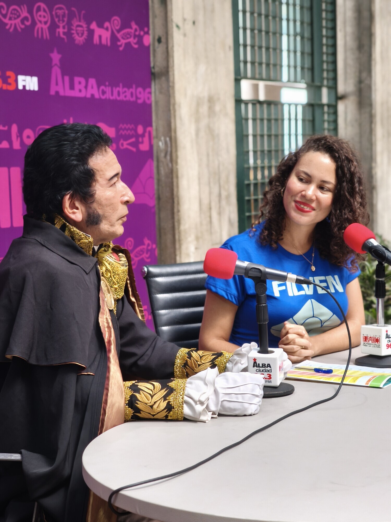 La diputada Casimira Monasterios, Berenice del Moral, visitantes de pueblos originarios, expertos en historia provenientes de Irán y hasta el Libertador Simón Bolívar interpretado por el profesor Juan Gámez, nos visitaron este miércoles en el espacio que Alba Ciudad 96.3 FM y el Canal Cultura Venezuela mantienen en la Feria Internacional del Libro de Venezuela, Filven 2025, que se realiza hasta el 13 de julio en la Galería de Arte Nacional y la Plaza de la Juventud en Caracas. ¡Conózcalos!