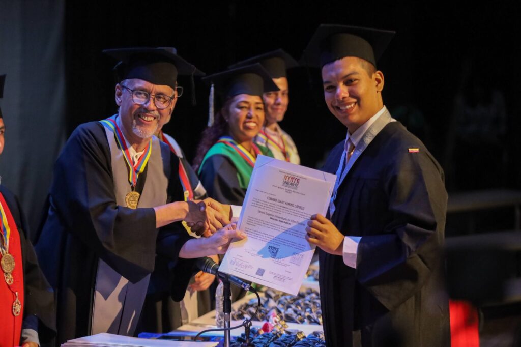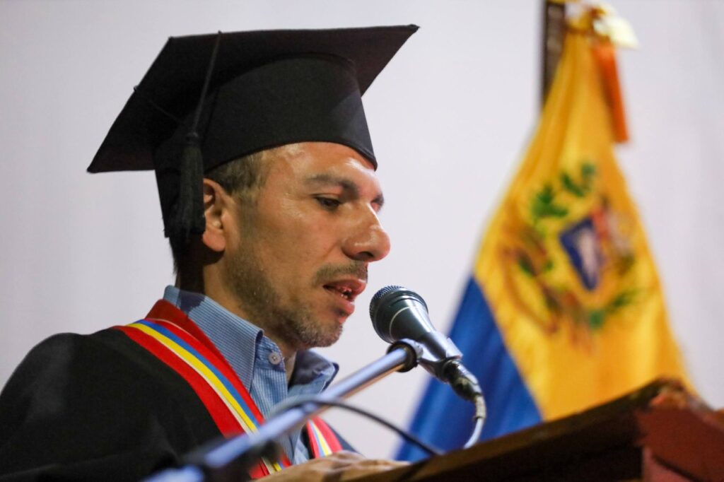 El rector de Unearte, Ignacio Barreto, felicitó efusivamente a los graduandos y destacó el inmenso mérito de haber culminado una carrera universitaria en el contexto actual del país. “Vivimos en un país al que se le ha declarado una guerra de medidas ilegales que ha impactado en toda la población”, aseveró Barreto, haciendo referencia a las dificultades que ha enfrentado Venezuela.
