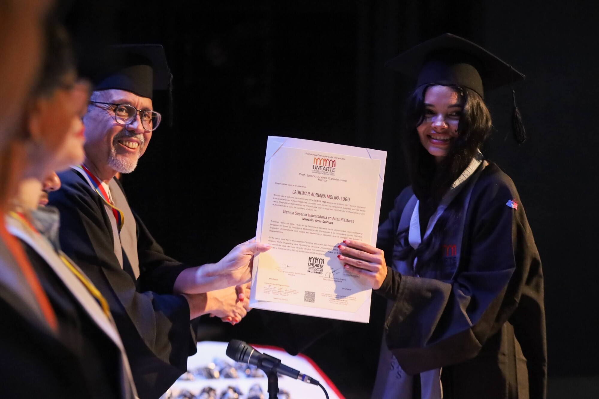 La Universidad Nacional Experimental de las Artes (Unearte) celebró este miércoles 23 de julio una emotiva ceremonia de graduación en la sala Ana Julia Rojas. Un total de 144 graduandos y graduandas recibieron medallas y títulos que los certifican como nuevos profesionales en diversas disciplinas artísticas.