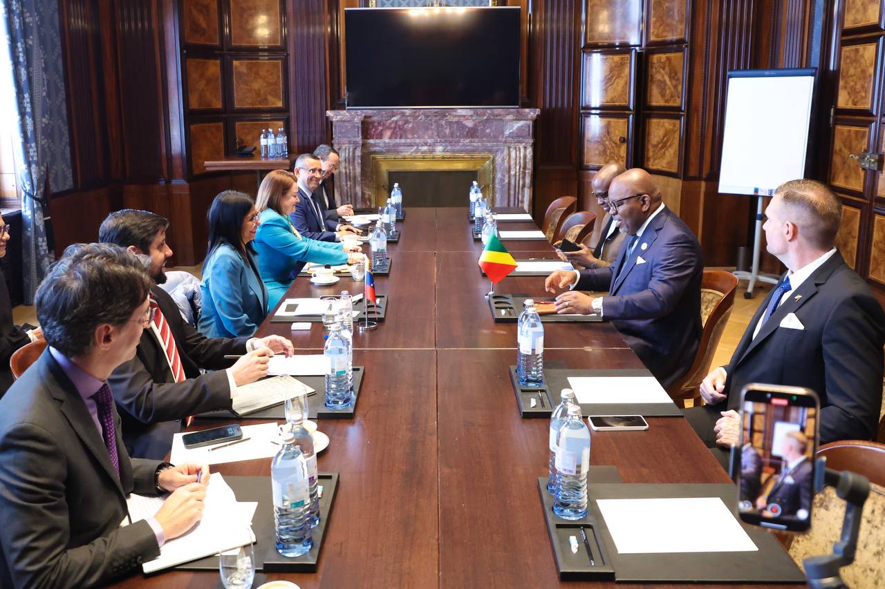 La vicepresidenta ejecutiva de la República, Delcy Rodríguez, se reunió con el ministro de Hidrocarburos de la República del Congo, Bruno Jean-Richard Itoua, en Viena, para revisar la agenda de cooperación energética entre ambas naciones.