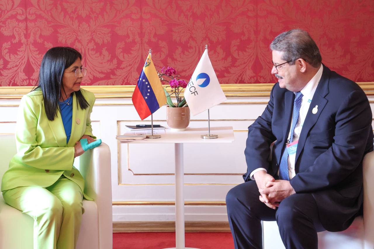 La vicepresidenta ejecutiva de la República y ministra de Hidrocarburos, Delcy Rodríguez, sostuvo un encuentro este viernes en la ciudad de Viena, Austria con el secretario general del Foro de Países Exportadores de Gas, Mohamed Hamel, para revisar el mapa de cooperación entre Venezuela y esta organización.