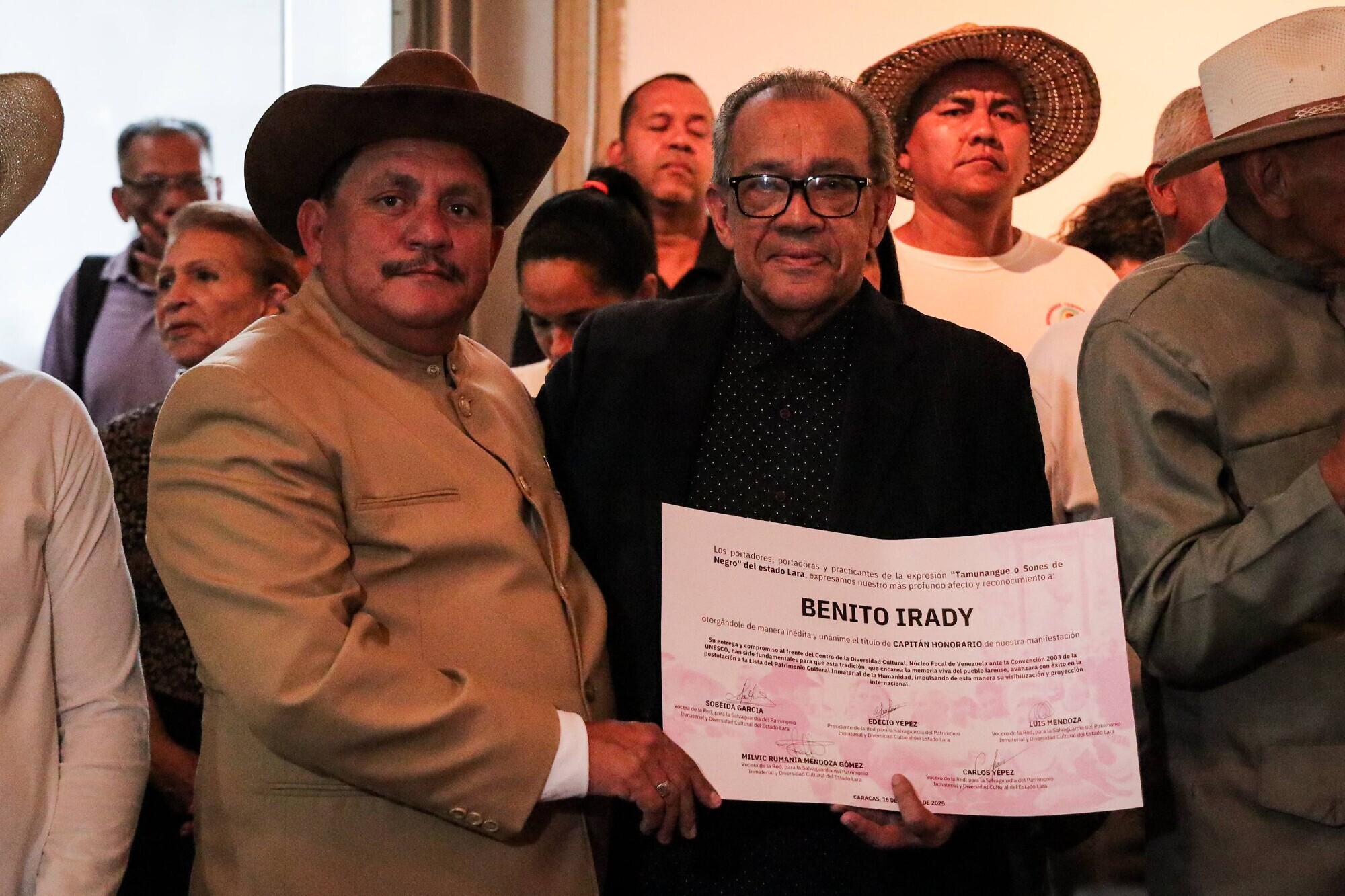 El maestro de tradición del Tamunangue, Edecio Yépez, de 78 años, expresó su emoción por este evento y lo calificó como el primer acercamiento significativo entre el pueblo y sus tradiciones que ha presenciado en su historia cultural. En un emotivo gesto, Yépez entregó el título de “Capitán Honorario” de los Sones de Negro a Benito Irady.