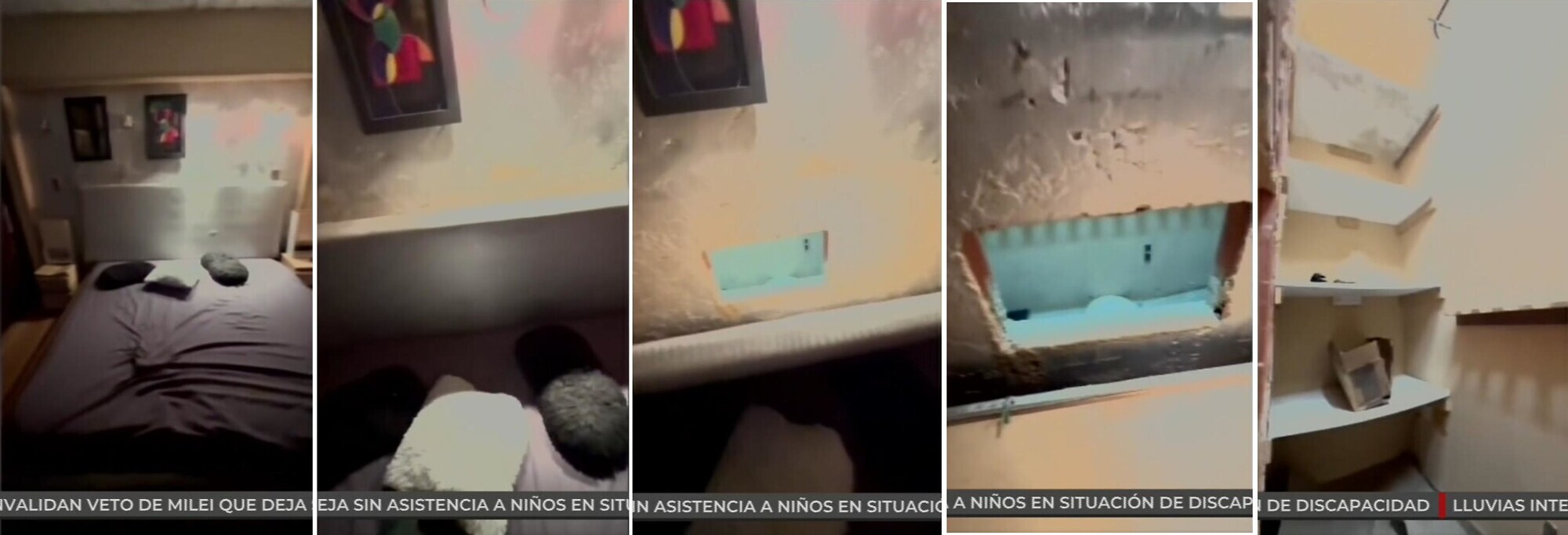A través de un material audiovisual, Cabello mostró imágenes sobre las caletas. La entrada a una de ellas estaba oculta detrás del respaldar de una cama en una una habitación. Otra detrás de un gabinete y otra detrás de un armario.