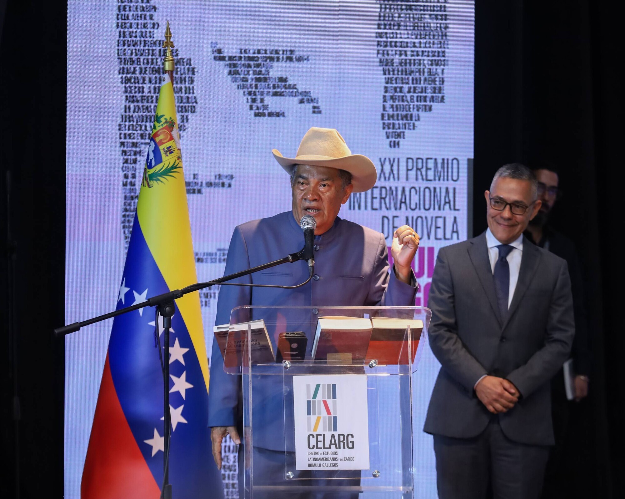 Por su parte, el presidente del Celarg, Pedro Calzadilla, informó que para esta edición se recibieron 474 novelas de 32 países, un incremento significativo con respecto a años anteriores. Destacó, que Venezuela se convierte en “el epicentro de la novela y el escrito en lengua castellana” y celebró la masiva participación de escritores, incluyendo la cifra inédita de 69 obras escritas por autores venezolanos.