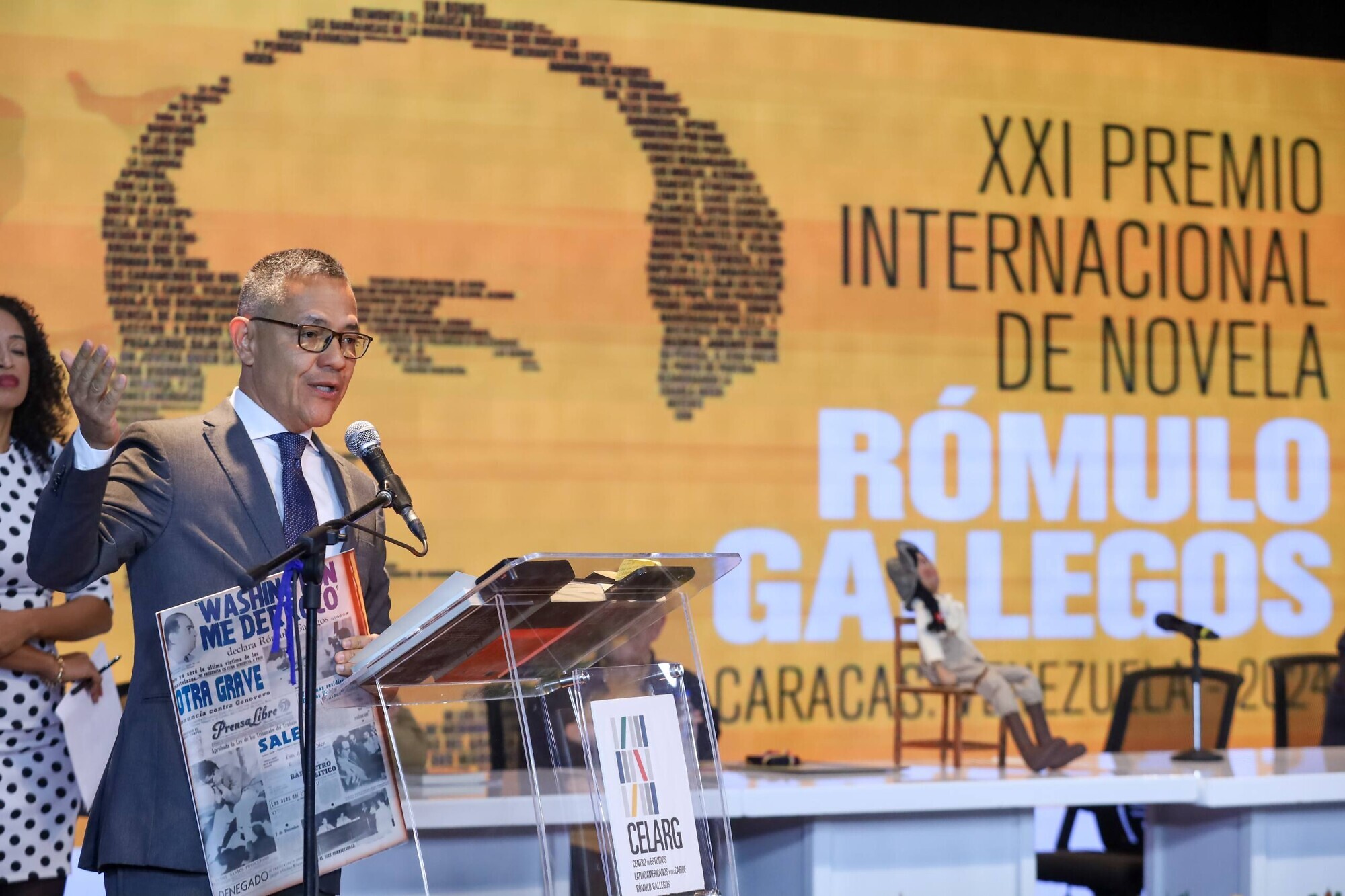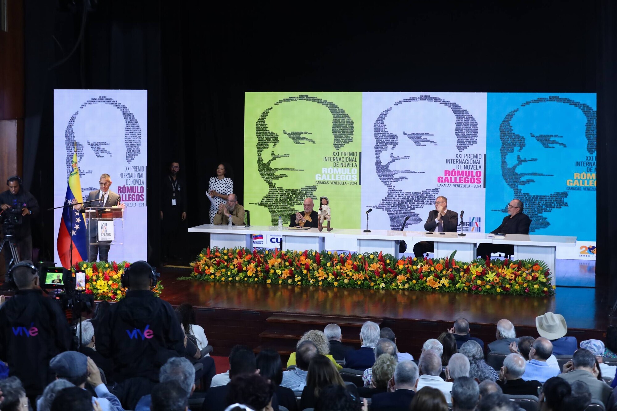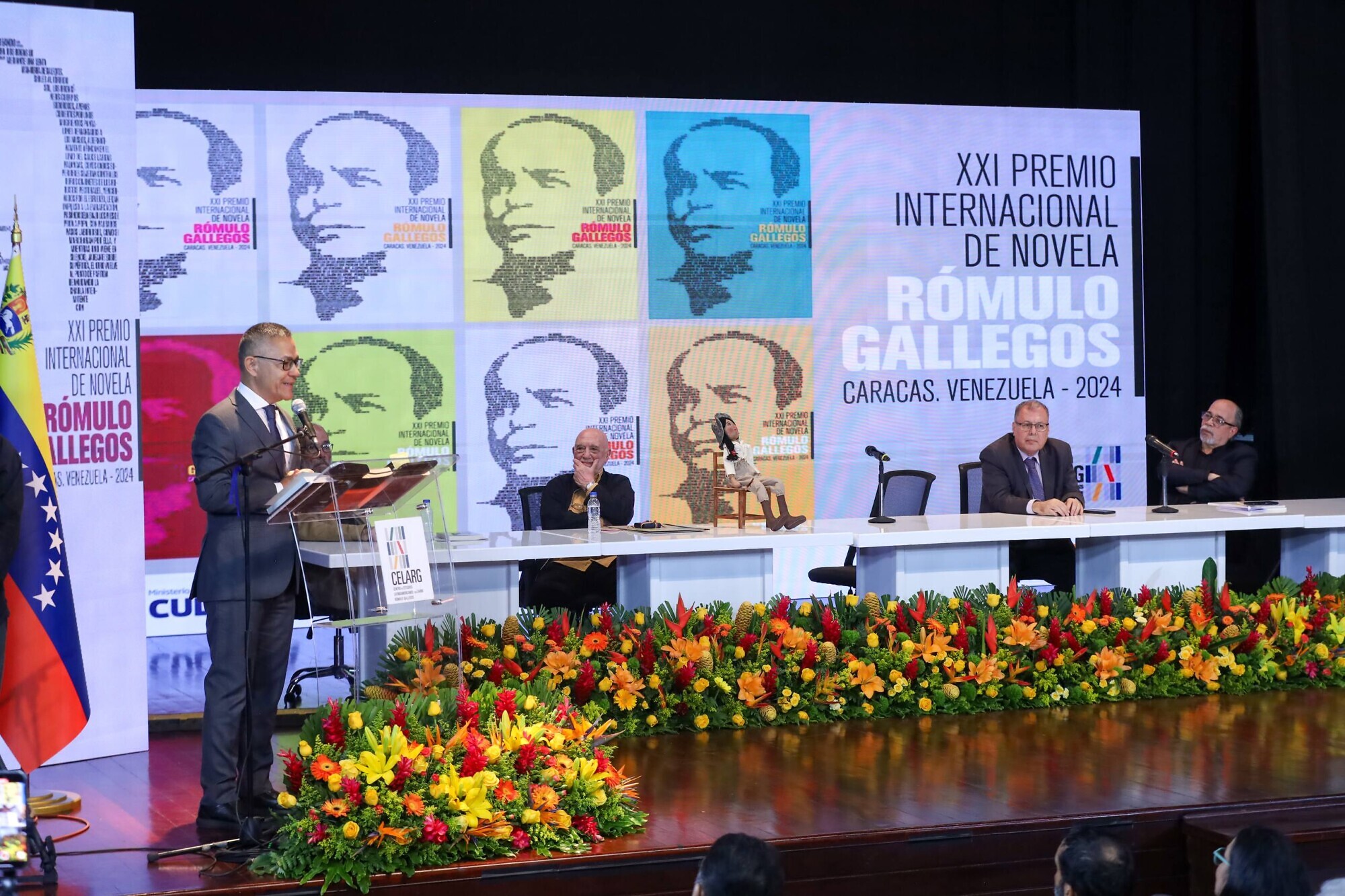 El evento contó con la presencia del viceministro de Fomento para la Economía Cultural, Raúl Cazal; la junta directiva del Centro de Estudios Latinoamericanos y del Caribe Rómulo Gallegos (Celarg); miembros del jurado calificador de la XXI edición del Premio Internacional de Novela Rómulo Gallegos, y el cuerpo diplomático acreditado en el país.