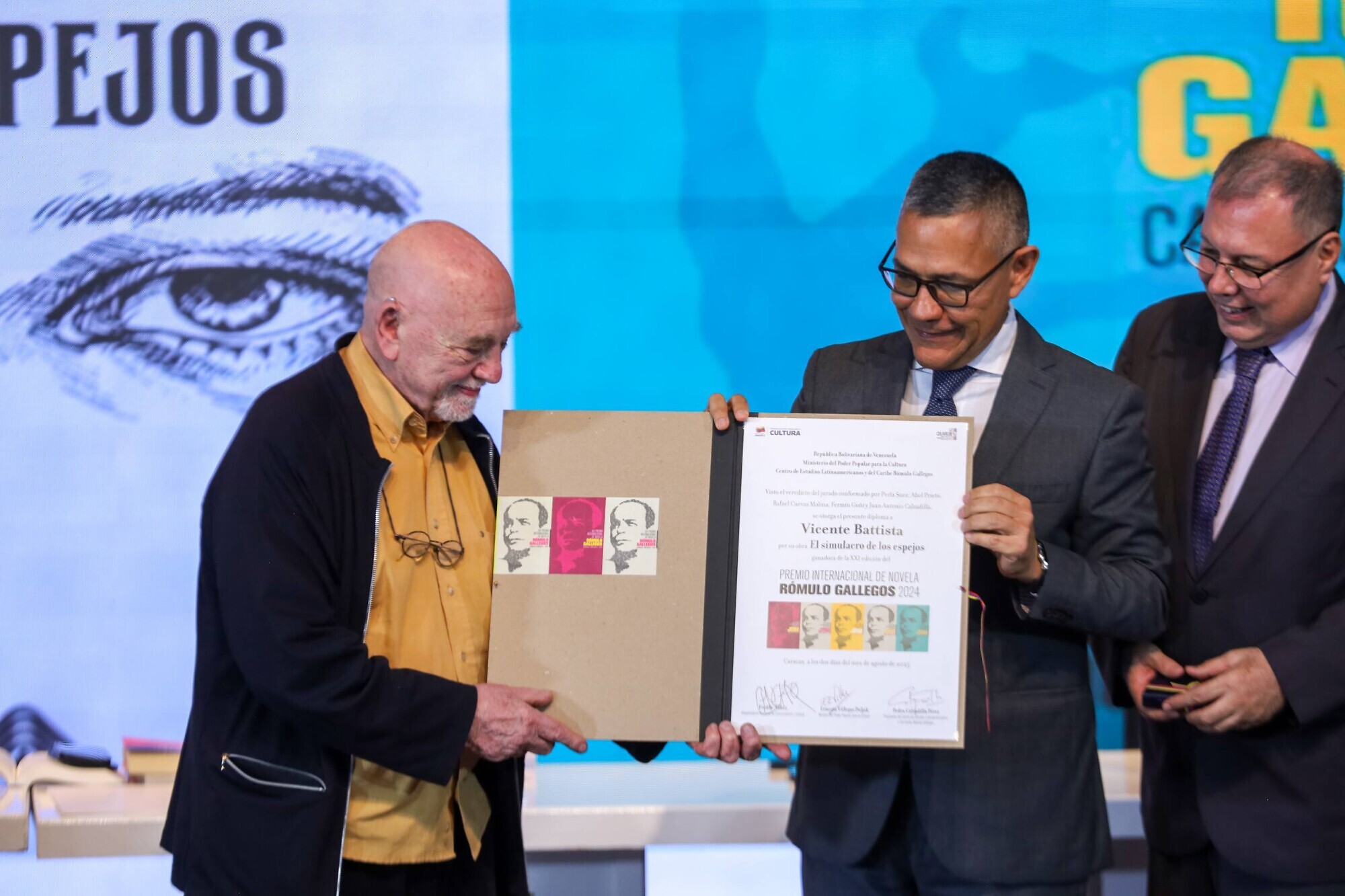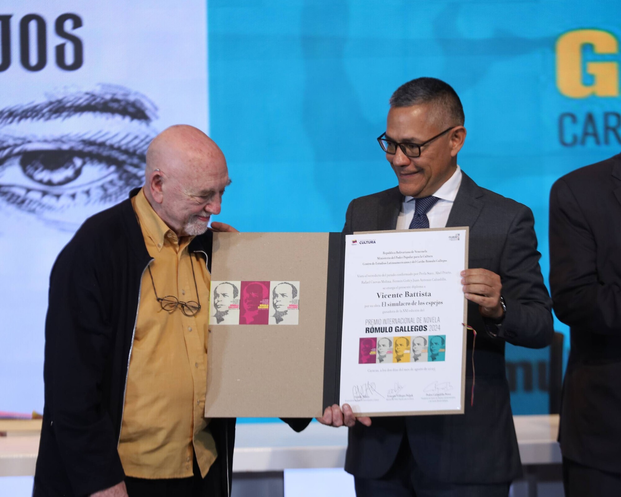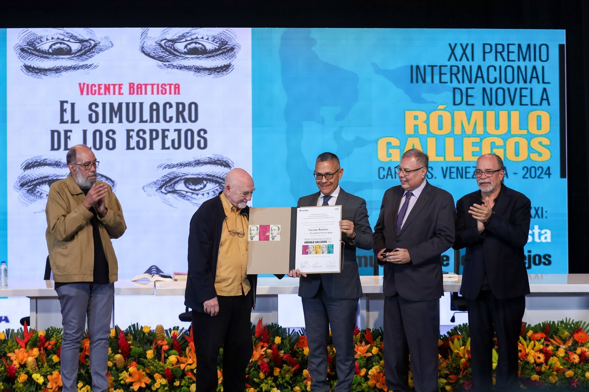 El Centro de Estudios Latinoamericanos y del Caribe Rómulo Gallegos (Celarg) entregó este sábado 2 de agosto, el Premio Internacional de Novela Rómulo Gallegos al escritor argentino Vicente Battista por su obra “El simulacro de los espejos”. El acto coincidió con la celebración del 141 aniversario del nacimiento del insigne escritor venezolano Rómulo Gallegos.