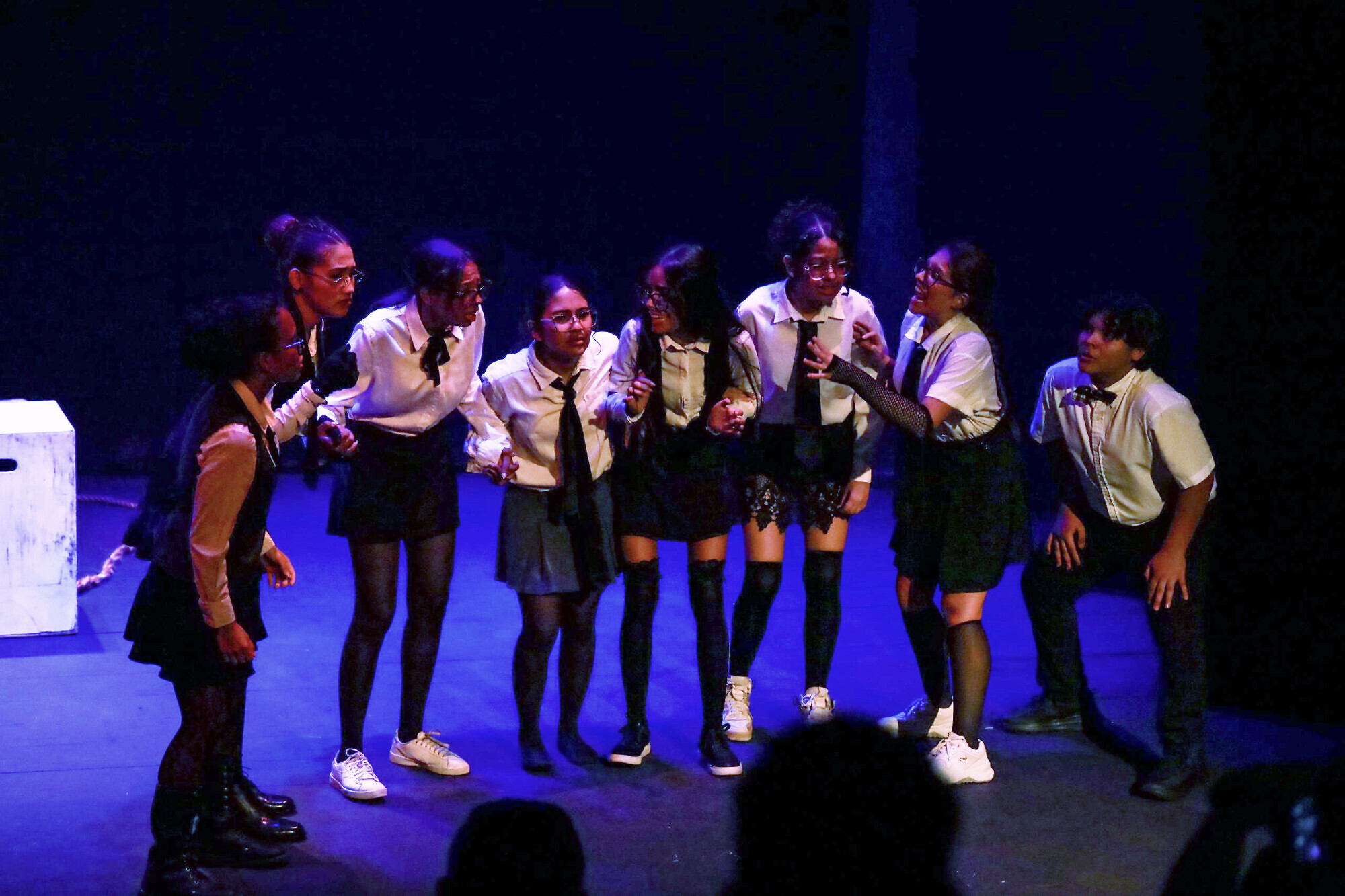 El elenco de la obra está conformado por Aislyn Becerra, Carlos Arroyo, Valeska Sánchez, Amarilis Meneses, Jhulyanna Jiménez, Omarlis Valdiviezo, Valeria Moreno, Itzá Olivares, José Luis Ospinos, Matías Meza, Sol Vázques, Victoria Sierra, Victoria Martínez, Valeria Vázques y Zeus Andrade. El entrenamiento vocal está a cargo de Omar Churión y Gema Nerissa está al frente del entrenamiento corporal.