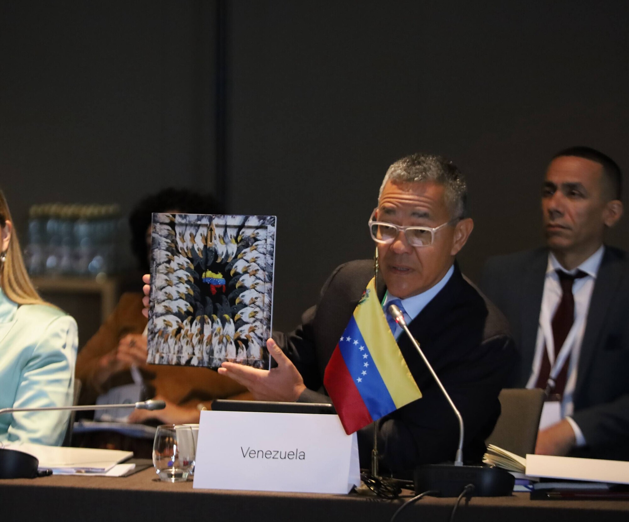 En su participación, el ministro Villegas presentó la propuesta de construir un instrumento internacional que proteja el Patrimonio Cultural de países víctimas de las medidas coercitivas unilaterales, mal llamadas “sanciones”.