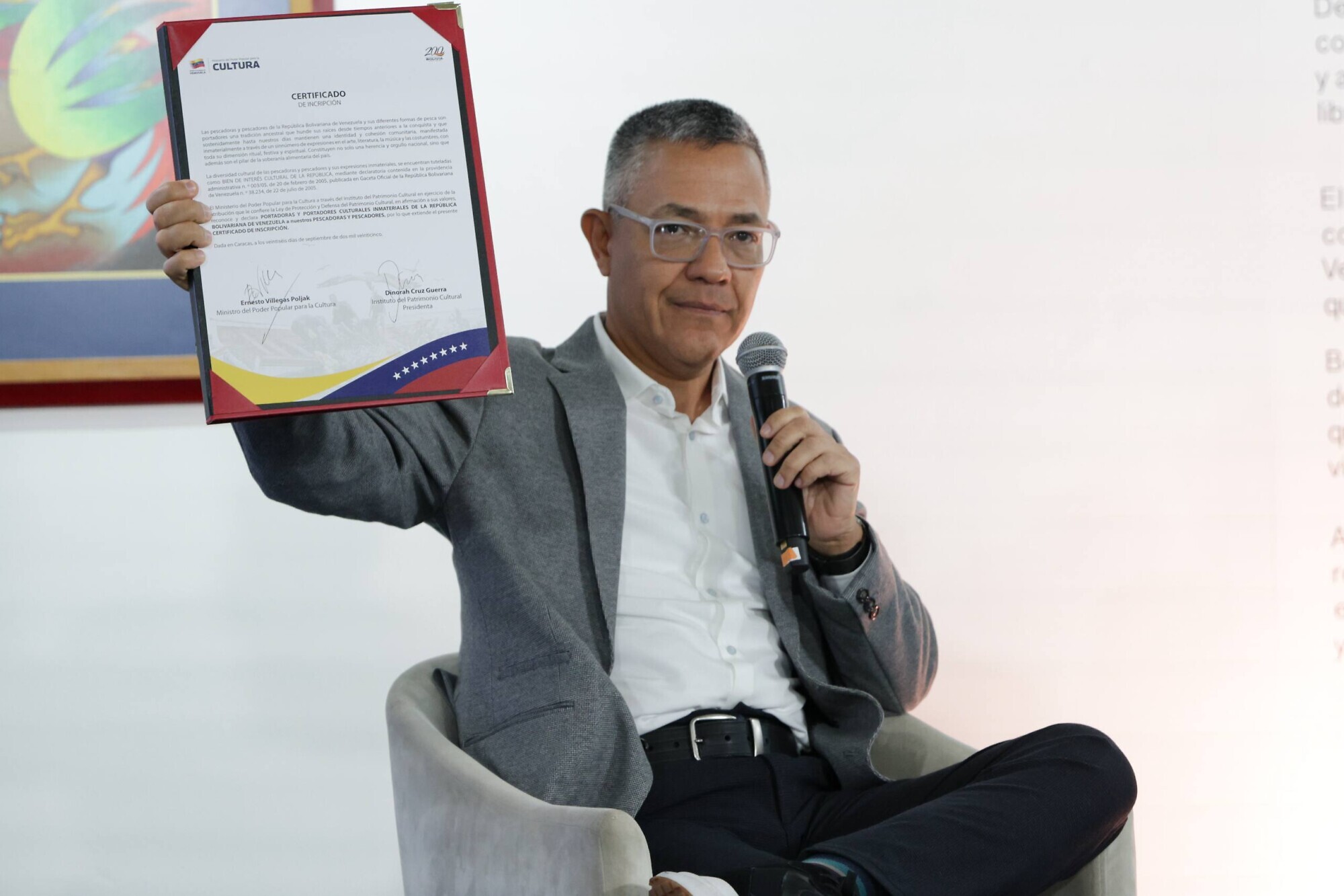 En un gesto de reconocimiento, la máxima autoridad de Cultura firmó el certificado de inscripción en el Registro del Patrimonio Cultural venezolano, que reconoce y declara a nuestros pescadoras y pescadores, como portadoras y portadores culturales inmateriales de la República Bolivariana de Venezuela.