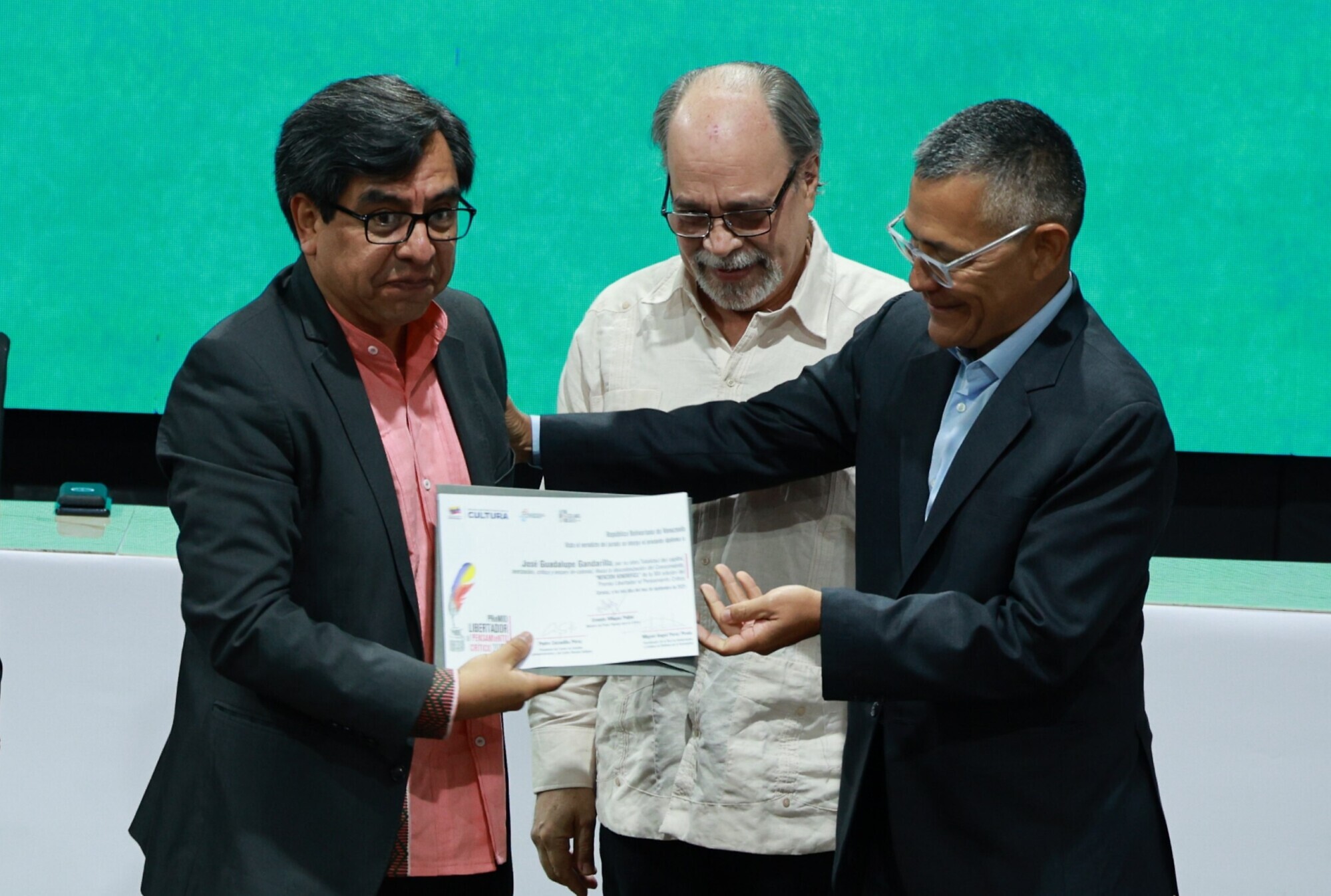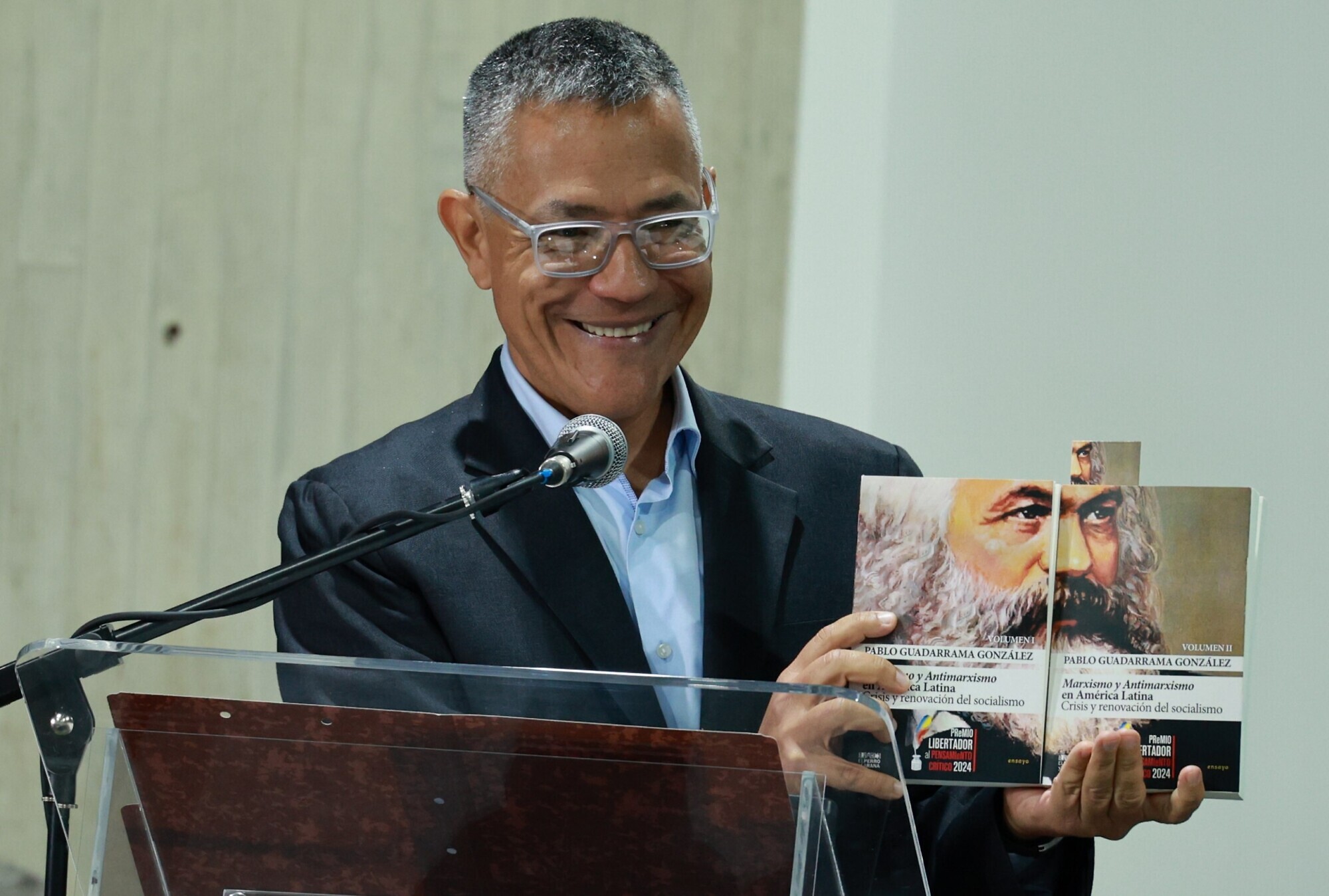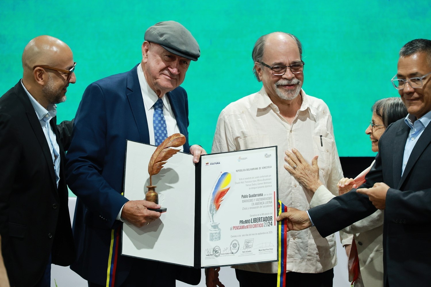 En una emotiva ceremonia celebrada en la sala Luis Britto García del Centro de Estudios Latinoamericanos y del Caribe Rómulo Gallegos (Celarg), se entregó la decimotercera edición del Premio Libertador al Pensamiento Crítico 2024 al filósofo cubano Pablo Guadarrama, por su obra “Marxismo y Antimarxismo en América Latina. Crisis y renovación del socialismo” (Volúmenes I y II), editado por la Fundación Editorial El perro y la rana.